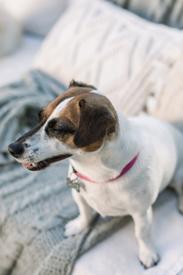 As for the workhouse variety, I use them to cover sofa and chair cushions as protection from dirty paws and shedding. When I notice Jim’s backside is covered in dog hair, I toss them in the washing machine. Earlier this year I bought multiple ivory throws from Target for this purpose.