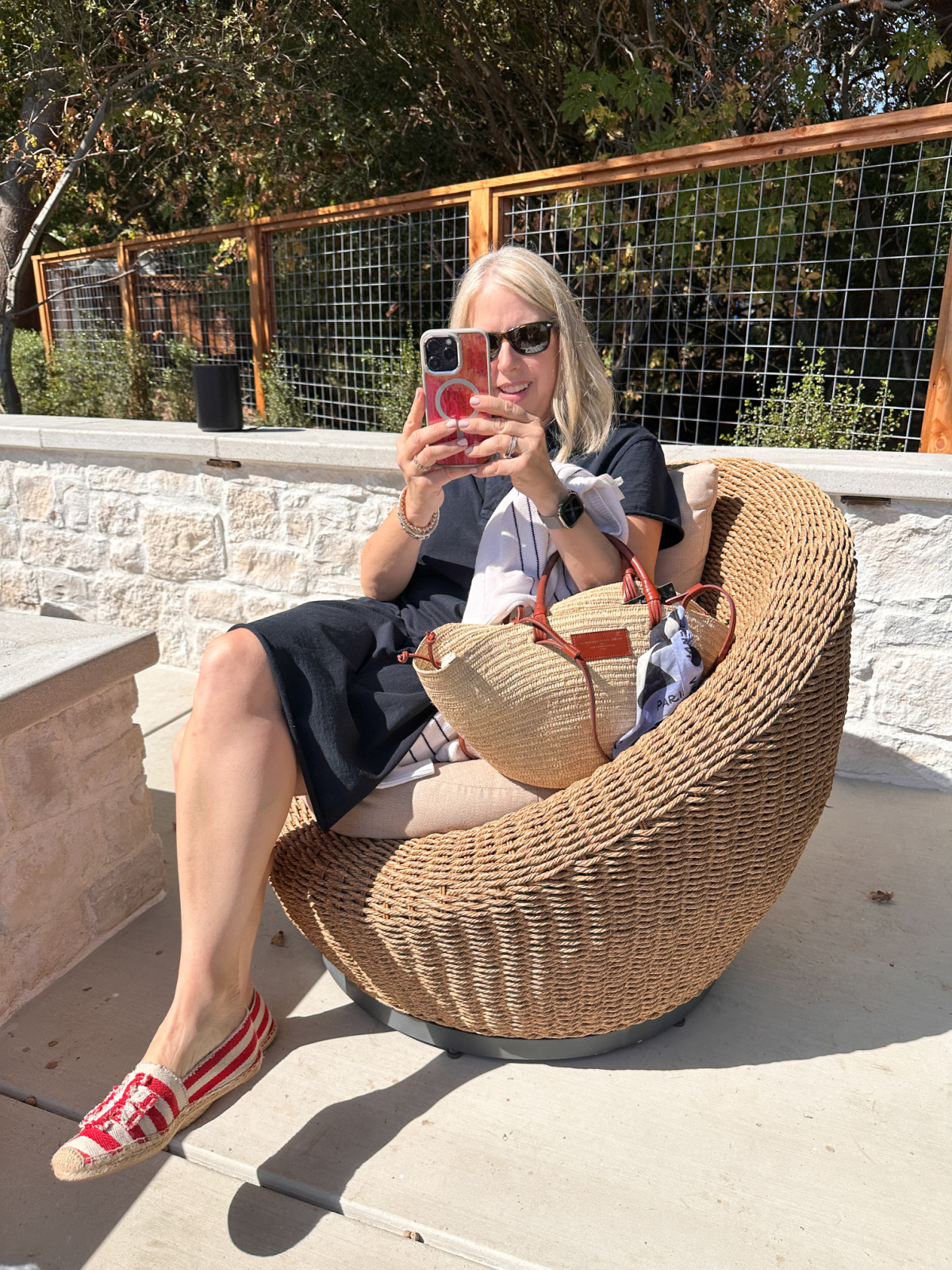 Being thorough, Kim and I tested out all the seating. The wicker swivels were our favorite. We considered ordering Door Dash, a bottle of wine and settling in for the afternoon.