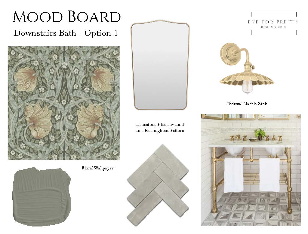 Wow this little home in NY is so you! Please do not move though… Hopefully you can take some ideas for the cottage. I love the mood board. The William Morris paper is perfect with that green! I can’t wait to see it all.