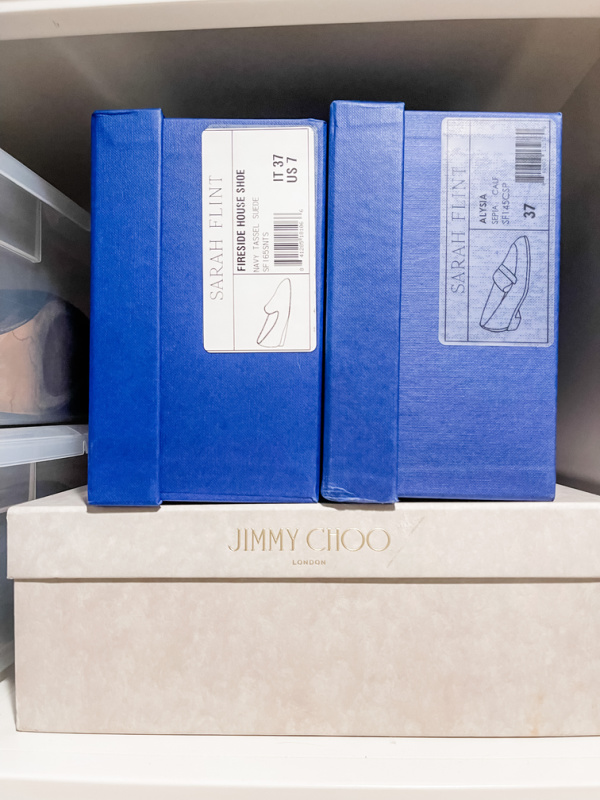 I didn’t take before photos. Why humiliate myself? Here’s how it looks now. (This is a small walk-in closet and taking photos wasn’t easy.)