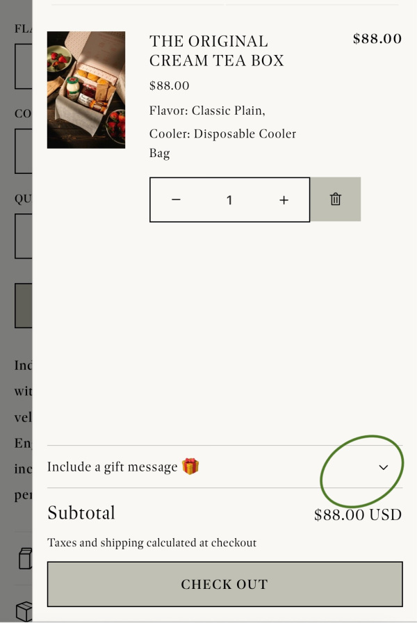 - I found it difficult to locate the ‘gift message’ option and Audrey at Mrs. Bakewell’s was nice enough to send me a screenshot of where to find it. Sure enough, there it is.