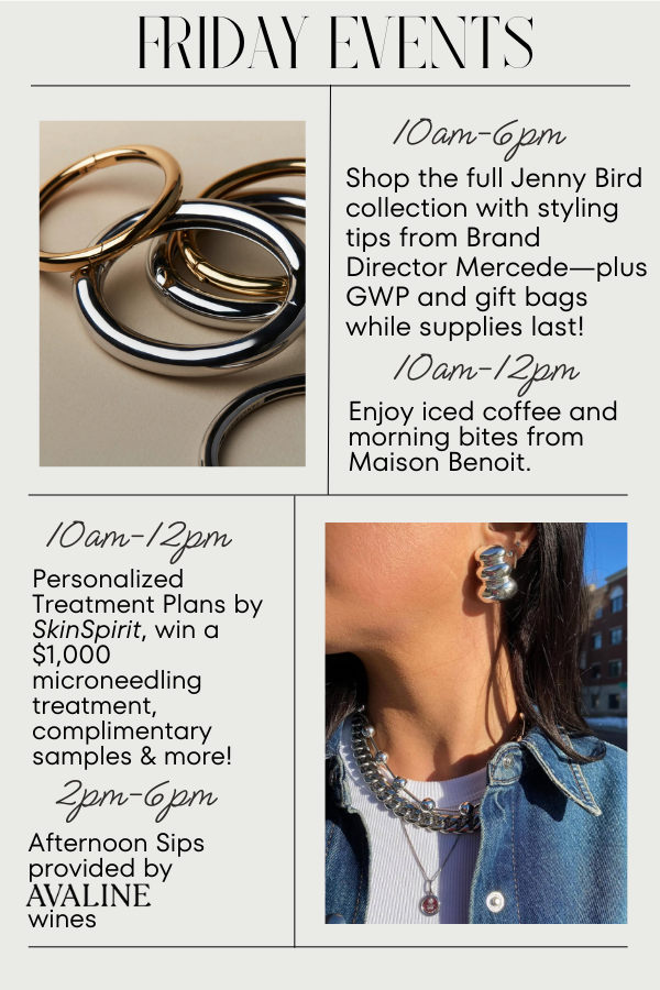 In other exciting news, and just in time for Mother’s Day, my favorite local boutique, Flaunt in Danville, is hosting a Jenny Bird Sip & Shop!
