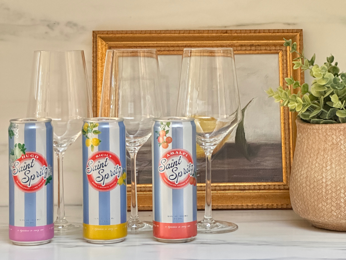 Saint Spritz is a brand of wine spritzes created by sisters-in-law JoJo Fletcher and Mallory Patton. The Bachelor and Bachelorette fans (sorry, that’s not me) may recognize JoJo from seasons 20 and 12, respectively. Saint Spritz crafts three spritz flavors … Amalfi, Sicily, and Hugo. Say no more … I’m ready to fill my glass.