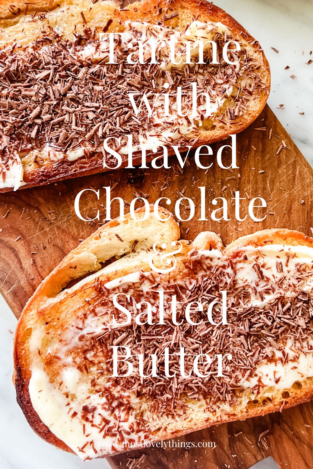 On Tuesday I joined Annie of the Most Lovely Things blog for her fun summer series Tartine Tuesday’s. Quite honestly when she asked me I wasn’t entirely sure what a tartine was … now I know it’s simply a French term for an open face sandwich. So I reimagined a family favorite sandwich as a tartine. You can find the recipe for my Prosciutto & Brie Tartine with Arugula and Strawberry Puree here. Annie’s tartine is made up of three of my favorite things … bread, salted butter and shaved chocolate. What could be simpler or more delicious?! You can find her Salted Butter & Chocolate Tartine recipe here.