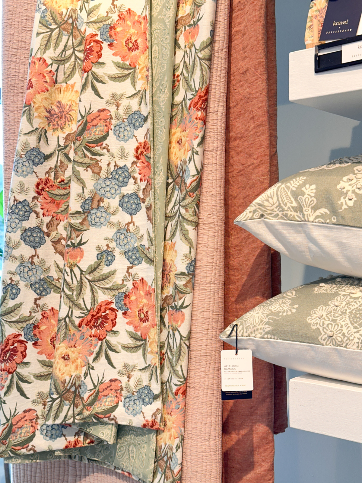 We met up at Pottery Barn where Kim was perusing the PB x Kravtz collection which I shared here last month. She bought a couple of cute things and I’ll leave it to her to share them. The Garden Floral Ikat reversible duvet cover, and coordinating accoutrements, is speaking my language.