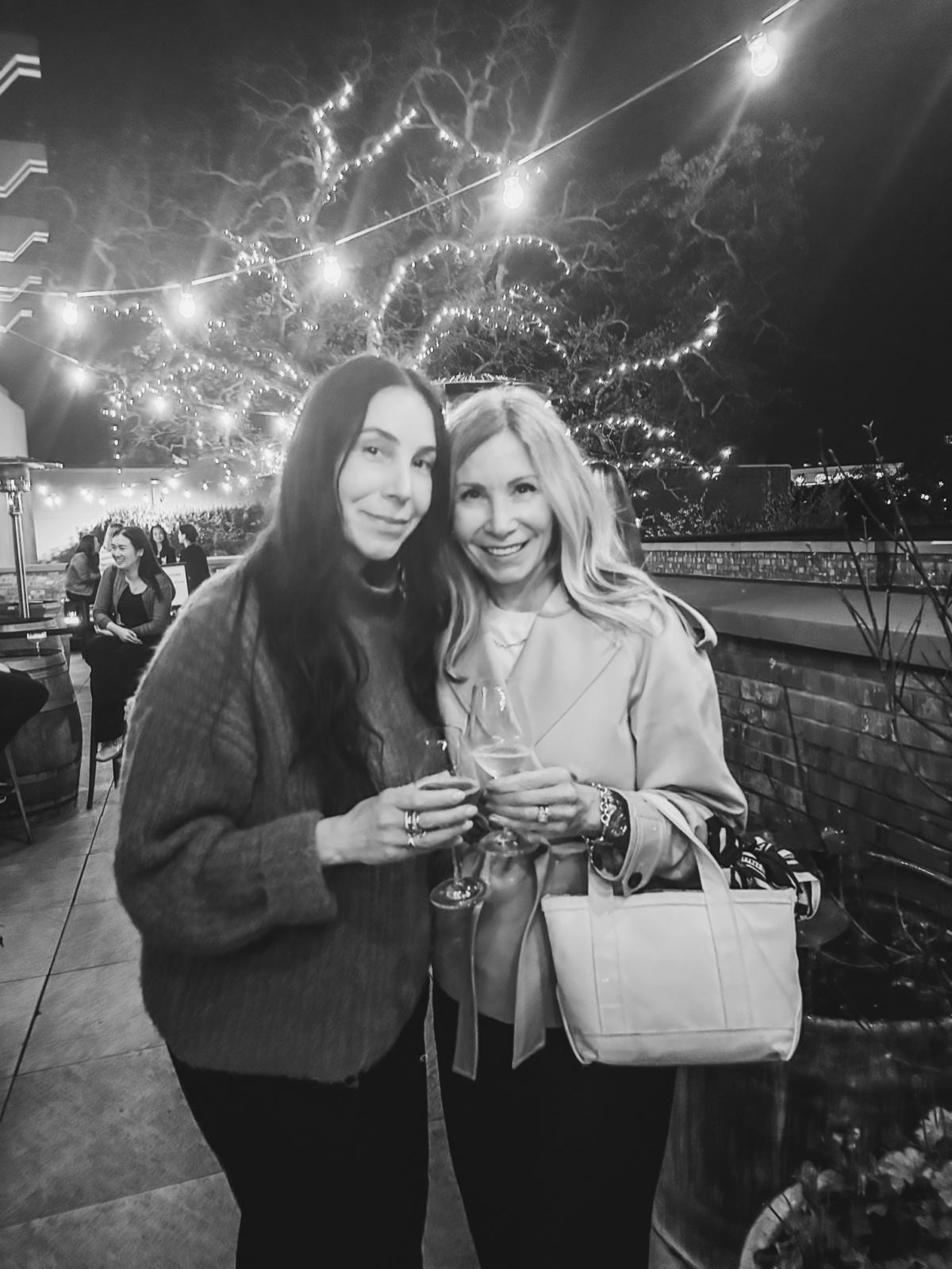 As we were leaving the restaurant we heard music coming from above and decided to investigate. It was coming from Calicraft Upstairs, a new rooftop cocktail bar in downtown Walnut Creek (from Calicraft Brewing Co.), right next to, and above, Va Da Vi. We climbed three flights of stairs (don’t worry, there’s an elevator) and were warmly greeted by the manager (maybe owner) and after explaining that we were lookie loos, he generously put glasses of bubbles into our hands (non-alcoholic for Melody) and invited us to look around. The place was hopping on a Thursday night and it couldn’t have been a prettier evening to sip bubbles on a downtown rooftop.