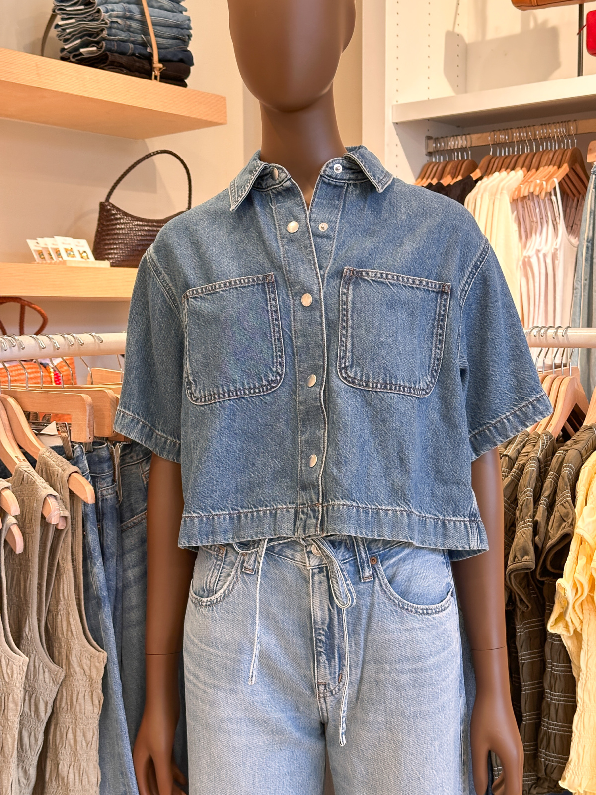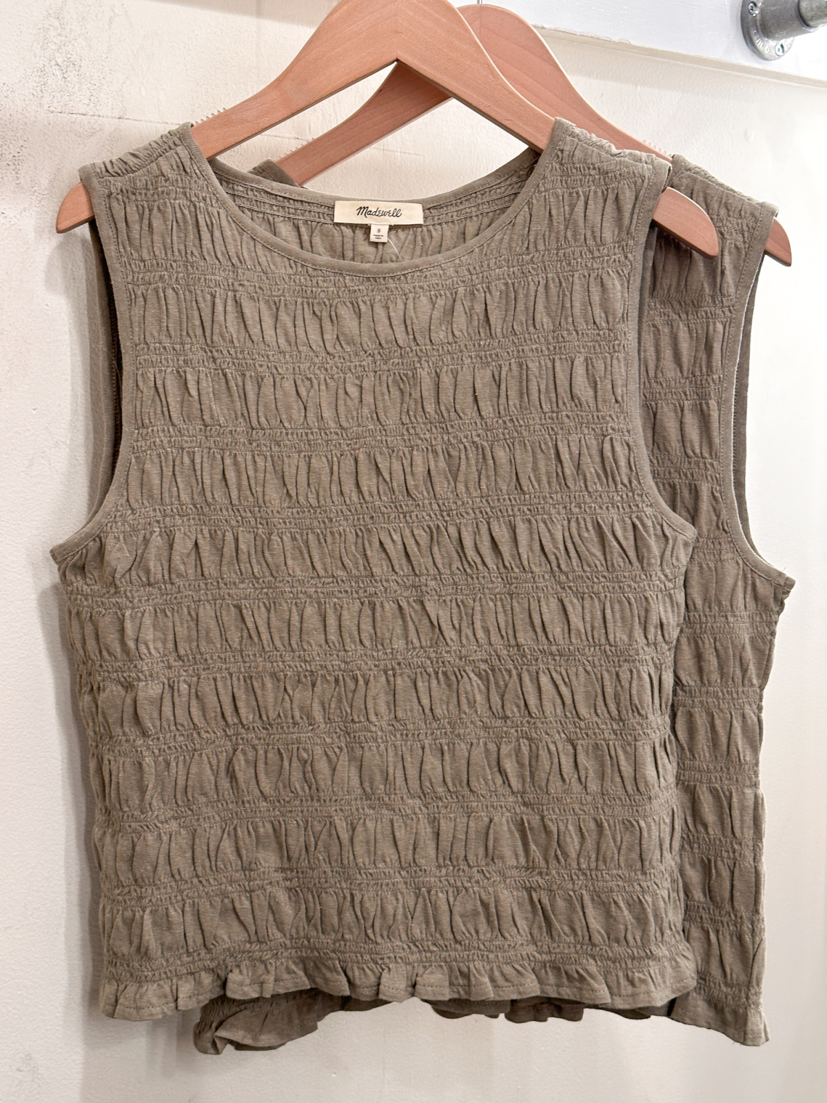 While I was at Madewell I tried on a few things including this pull on track-style pant. And this smocked boatneck tank. The tank comes in several colors, and I’m drawn to the pineapple and botanical green, but white is probably the most versatile for my closet, or the white and beige subtle stripe. Oh, and this cropped denim button up is really good.