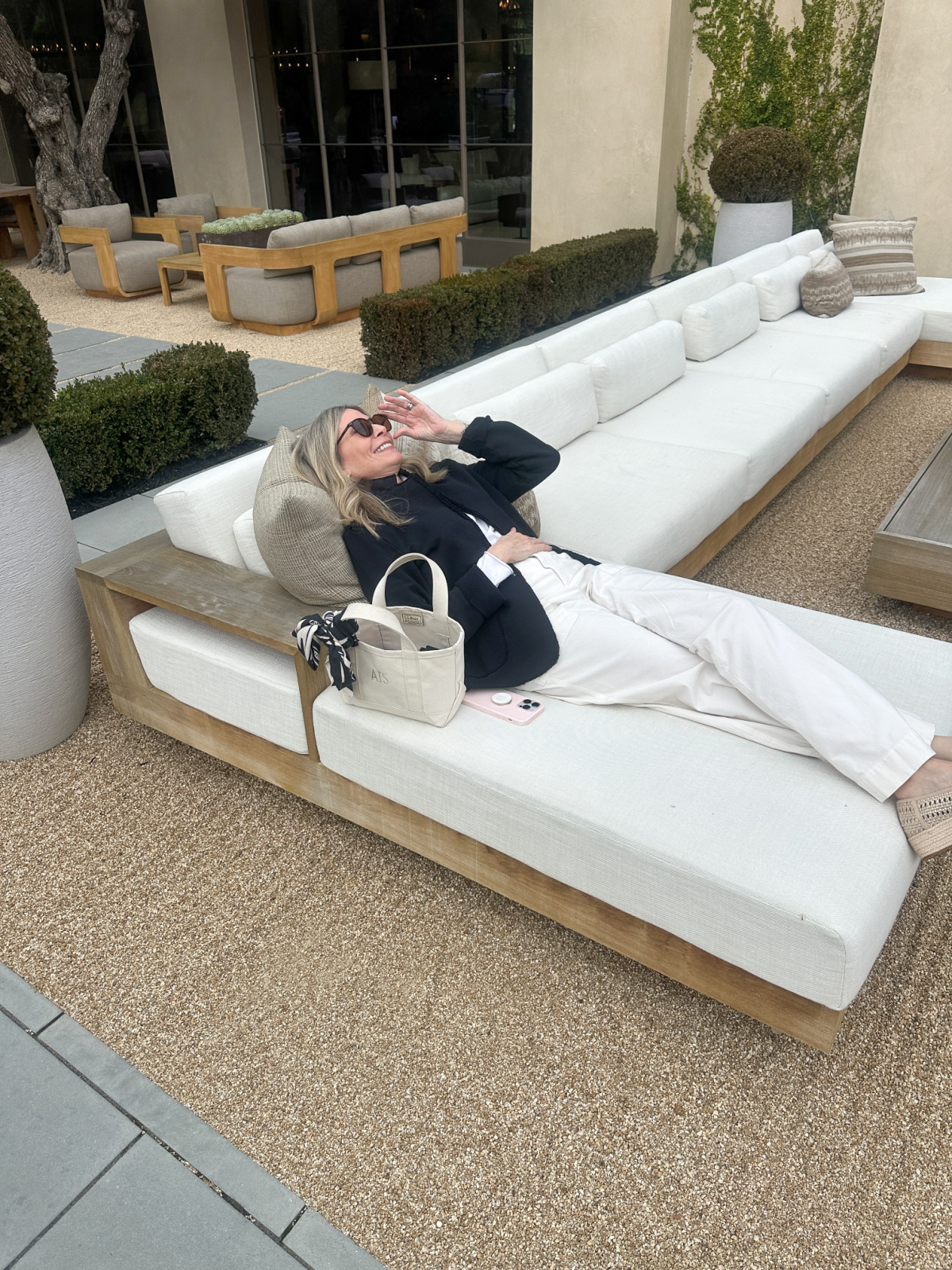 Good morning! Looks like you and Kim had a grand day out. I love a lunch with a friend or family at the RH rooftop in Corte Madera. I tried to get the Verse eye cream but the web site kept crashing. Did you pick a sofa yet?