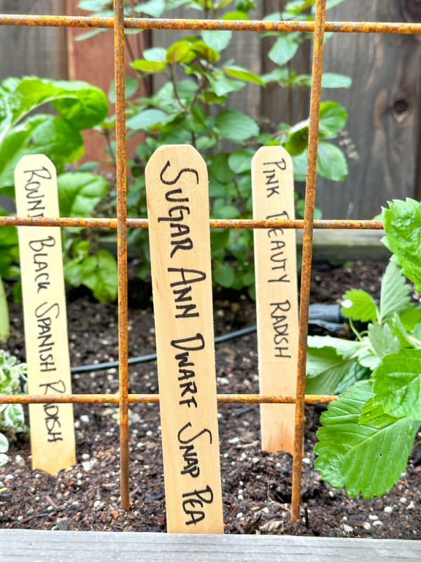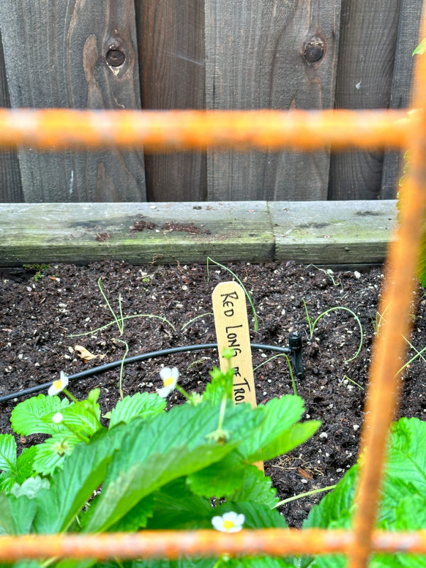 And she planted more radishes, bunching onions and snap peas which will grow up the trellis.