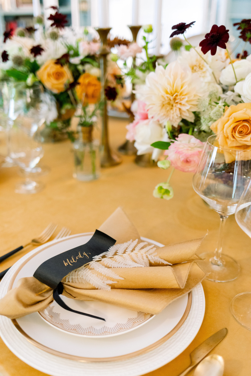 Juliet this was amazing. a velvet tablecloth? I didn’t know they existed either. I am obsessed with the bleached ferns and the name tags were perfect. The color scheme of yellow was so perfect for your room. Wow what a feast you prepared!!! thank you for sharing this very special day with all of us.