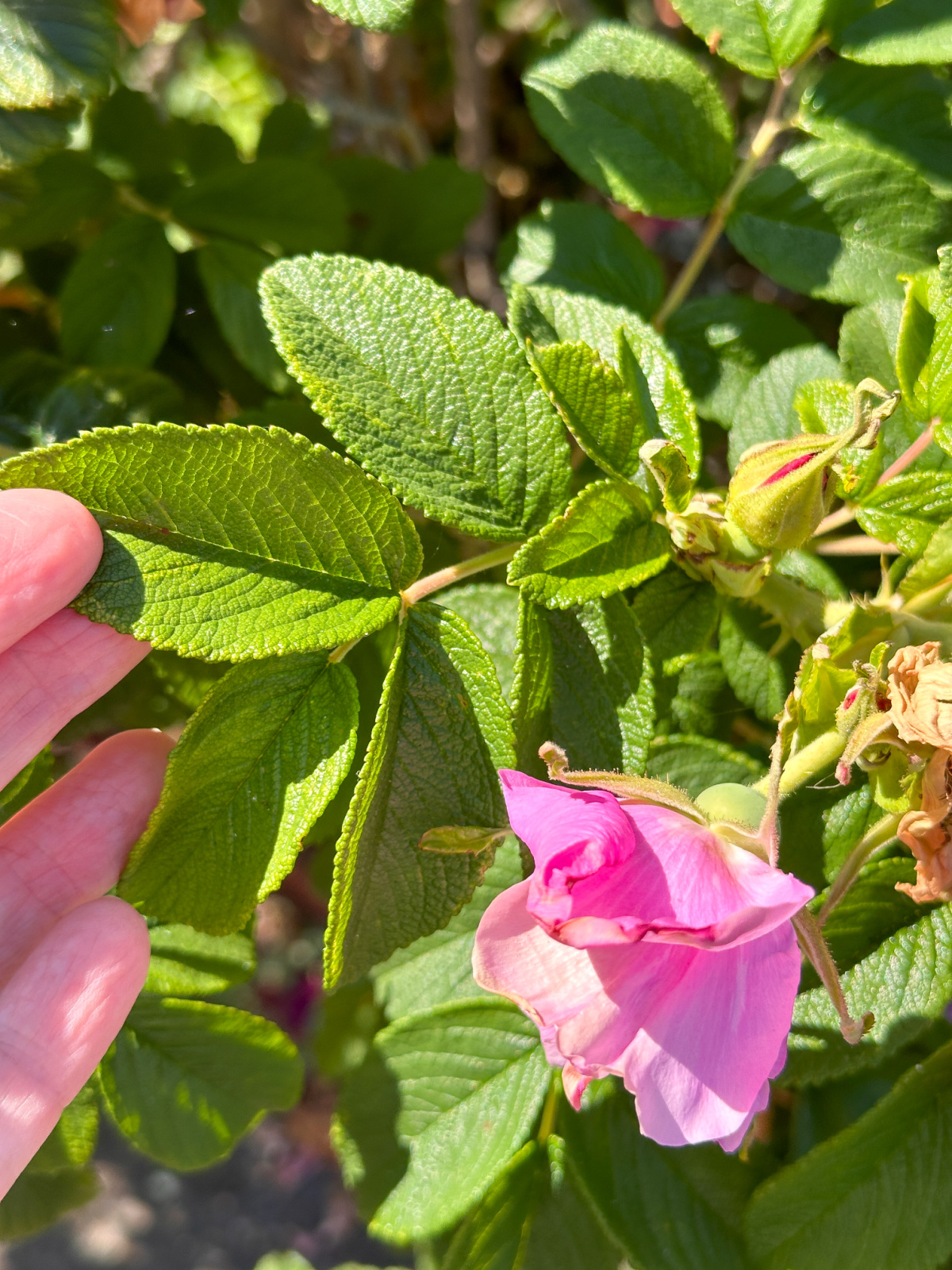 The leaves on this Foxi Pavement rose look of mint.
