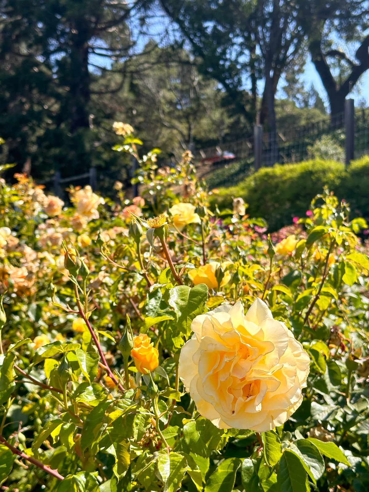 The garden contains over 1500 rose bushes and 250 rose varieties, most of them labeled.