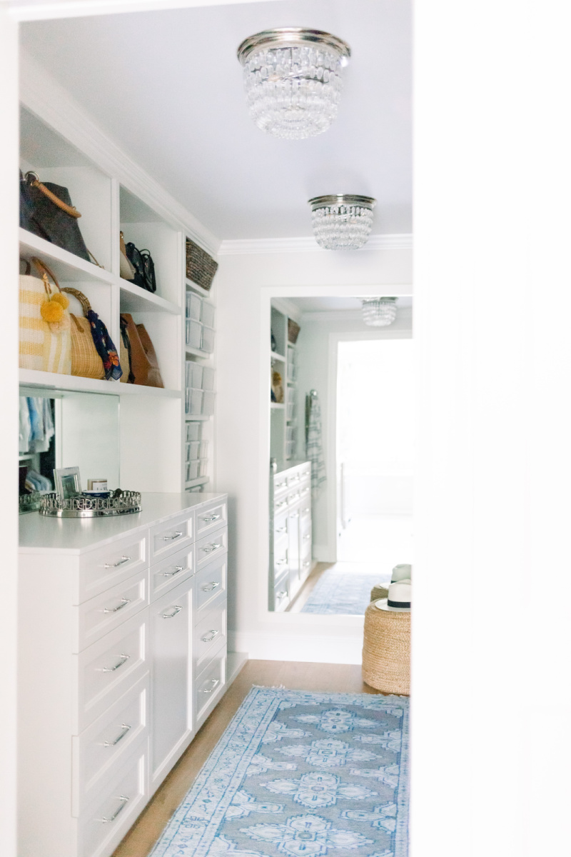 In the walk-in closet I chose the Paris Flea Market beaded flushmount light. I used this fixture in our Fidalgo Island closet and loved it. The sterling silver finish tarnishes over time and creates a cool look. Similar to the bedroom fixture, the glass beads create a pretty effect on the ceiling.
