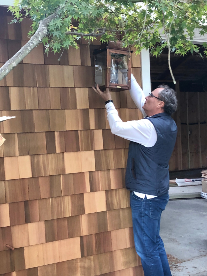 And finally, our exterior lighting … the piece de resistance. Talk about icing on the cake. I’ve admired Bevolo copper lighting for a long time. I thought they only made gas lights. Turns out they make electric too. Early on in our renovation planning process we decided on Bevolo and submitted our architectural drawings online. Ryan from Bevolo (located in New Orleans) contacted me and we began the process of choosing the right style and size fixtures for our house. It was a fun process and after our order was placed it took about six weeks until the boxes arrived. Two weeks early!