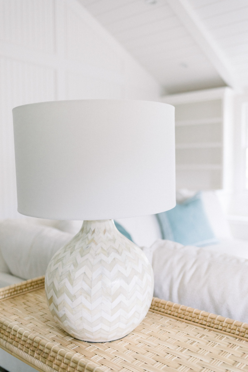 Are you a fan of a hanging shade? I am and I adore this Simple Scallop Shade in our guest bedroom. The Emilie Ceramic table lamps have USB ports in the base which is a great feature for bed table lamps.