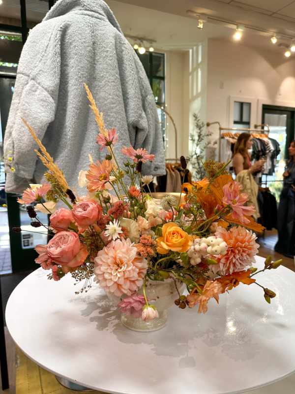 I was thrilled to receive a golden ticket to Flaunt’s 20th anniversary celebration and it was a highlight of my week. Niece Shelby was my plus-one. Twenty years is a long time for anything, but for a small business it’s a huge accomplishment. Congratulations to Ashley (you may know her as Modern Glam Home) who must have opened up shop when she was 13! I wore a favorite Ulla Johnson dress purchased at Flaunt two or three years ago. Click this link for a closer look at the beautiful floral installation by Busy Bees Floral.