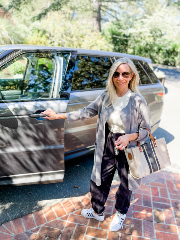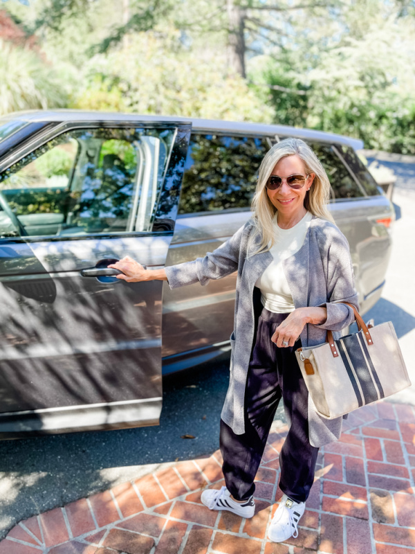 After lunch I wandered through the store to see what’s new for fall. It was a chilly day, and their cozy loungewear caught my eye. One of the many advantages of working from home is not worrying – too much – about what to wear to the office. I put on some version of this ensemble most days through the chillier months. Comfortable, yet presentable if someone knocks on the door – quel horreur! – or I need to run a quick errand.
