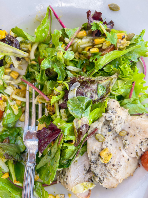 On Tuesday I had my hair highlighted. It was long overdue. This was before Town and Country Magazine announced that blond highlights have gone out of fashion. What? I could have saved 2+ hours and a couple hundred dollars. Anyway, my hair salon is conveniently located kitty corner to Nordstrom so of course I took myself across the street for lunch. Have you ever had Nordstrom Cafe’s Cilantro Chicken Salad? So good. And their tomato soup with a toast baguette slice on top is another favorite. Bonus … they have good iced tea.