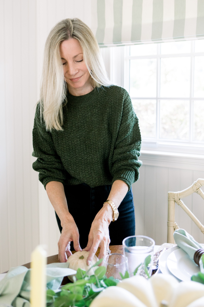 Here’s how I’m setting our cozy Thanksgiving table for four.