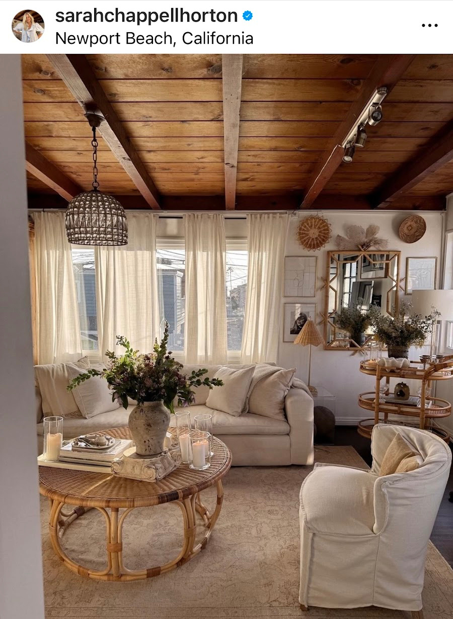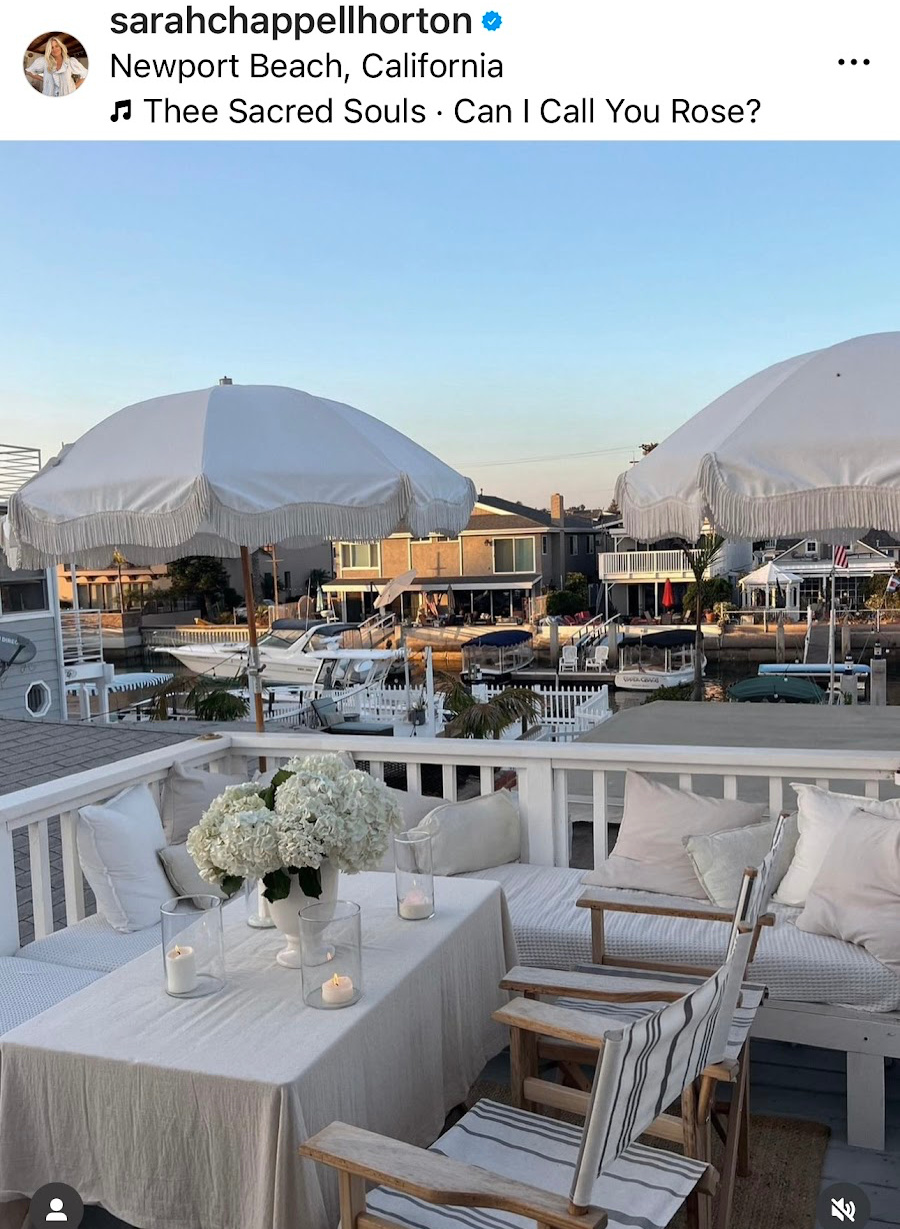 Last summer Sarah popped up in my TikTok scroll. I don’t spend much time on TikTok so I started following her on Instagram for daily doses of happiness and light. Sarah lives in a next-level charming 425 sqft Newport Beach apartment. She has a very Nancy Meyers-on-the coast aesthetic and I can’t get enough. Her apartment is a mix of high and low, new and thrifted, traditional and eclectic. Same with her wardrobe and I love her outfit inspirations every bit as much as her apartment styling. Sarah’s Reels and Stories take us inside her magical life on the coast … traveling, shopping, thrifting, styling her home as well as her cute outfits. She’s an incredible host using her enchanting deck, overlooking the Newport coast, as a dining room. I should stop talking and let Sarah’s photos and videos speak for themselves. If you don’t know Sarah, be prepared to fall hard.