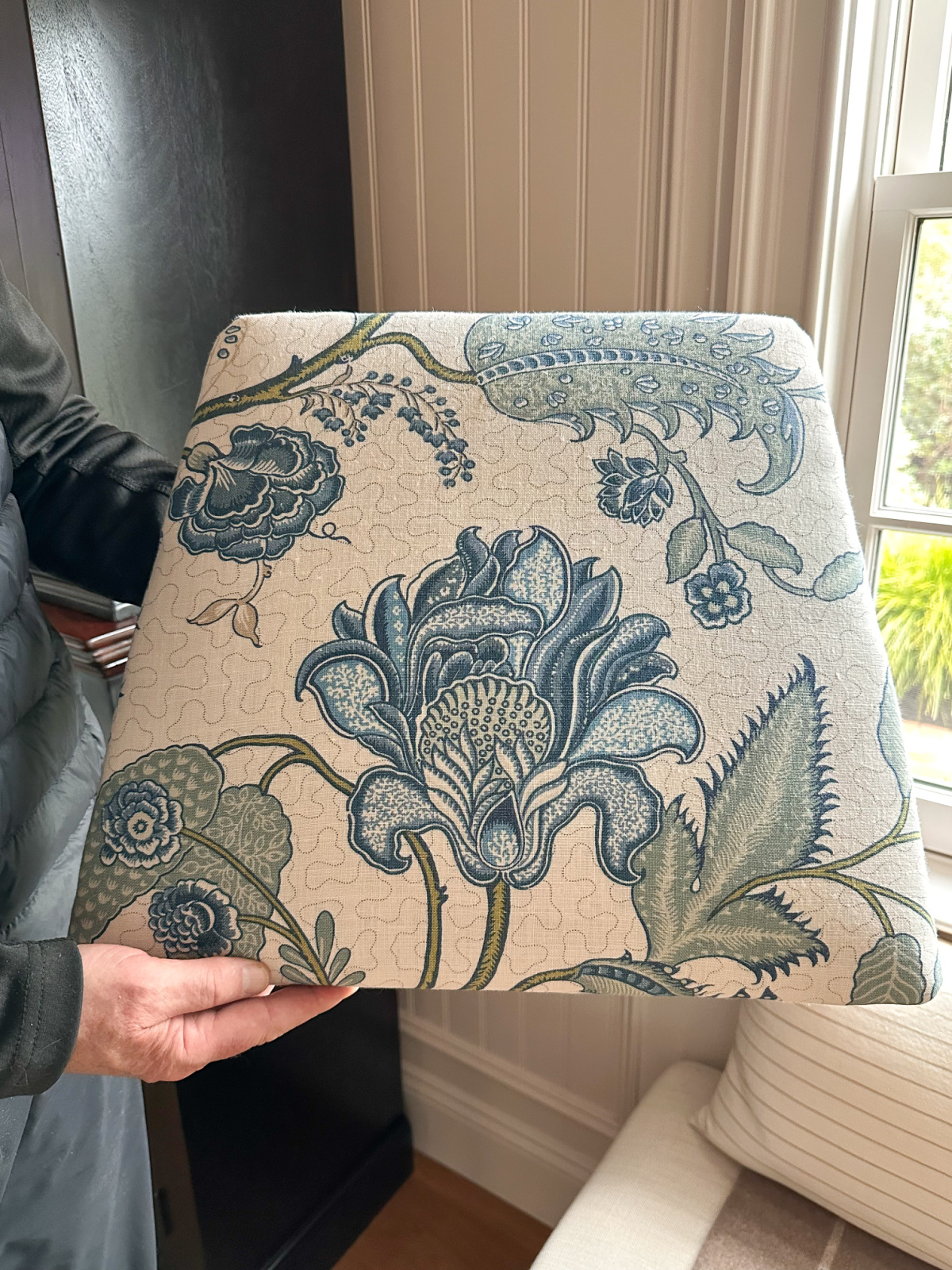 18. I am missing my flowers, still winter in NH. My favorite is gardenia. I have reupholstered many a dining chairs , benches. Fun to see the finished piece.