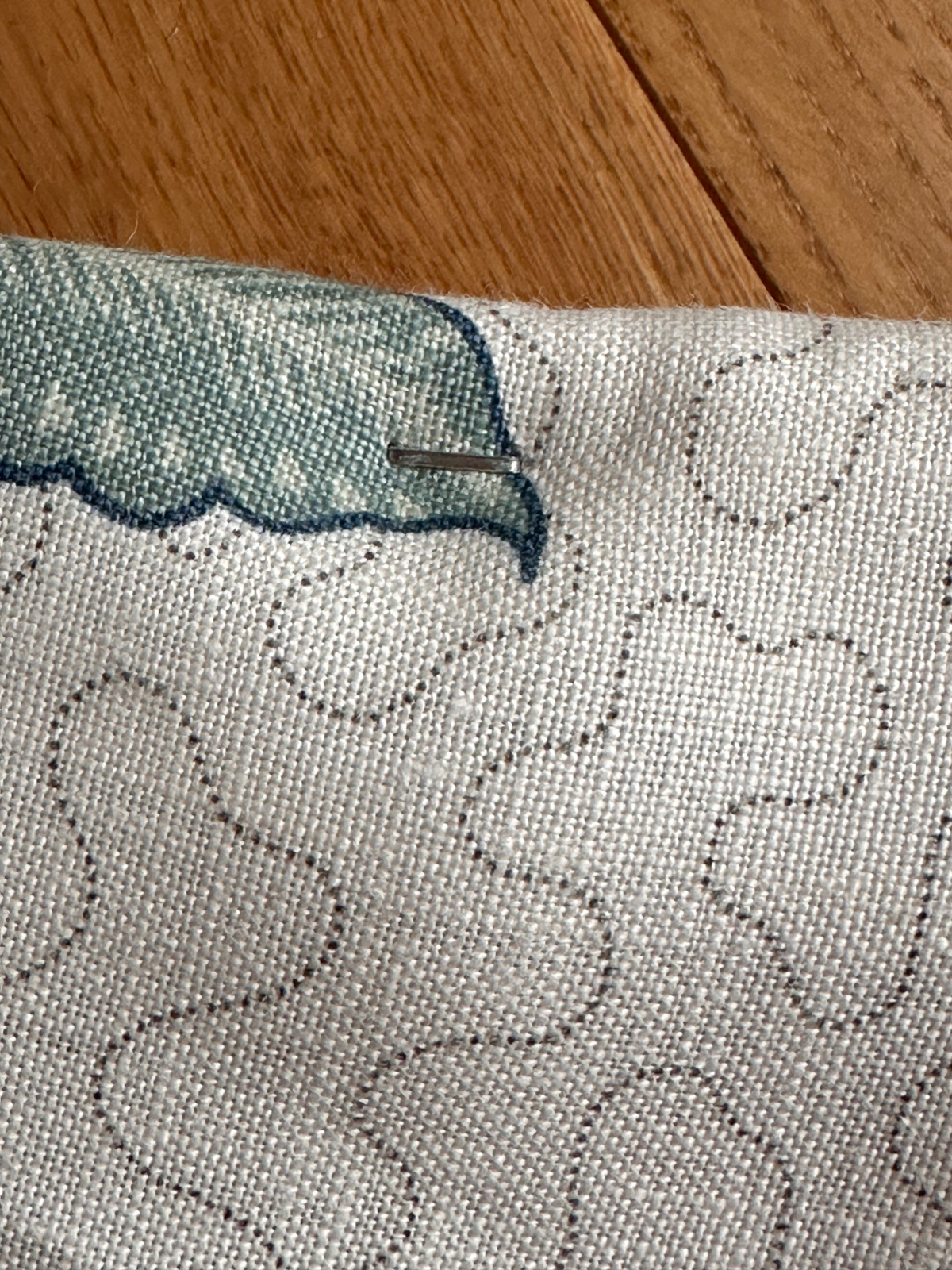Fast forward 30+ years and this little cutie had fallen on hard times. About three years ago I resurrected her and dragged her into my office where she’s been sitting ever since waiting for me to figure out what to do. About once a week Jim asks ‘what are you going to do with that chair?’ Well, this week it came to me. There’s a perfect spot for her in our bedroom … and I’ve been holding onto a small remanent of Schumacher’s Sinhala Linen Print fabric used for our bedroom Roman shades. I told Jim my idea. Astutely realizing that his efforts to send my little treasure to the dump were futile, he went the the garage to get a screw driver and staple gun. An hour later, voila … my sweet little chair has a new life.