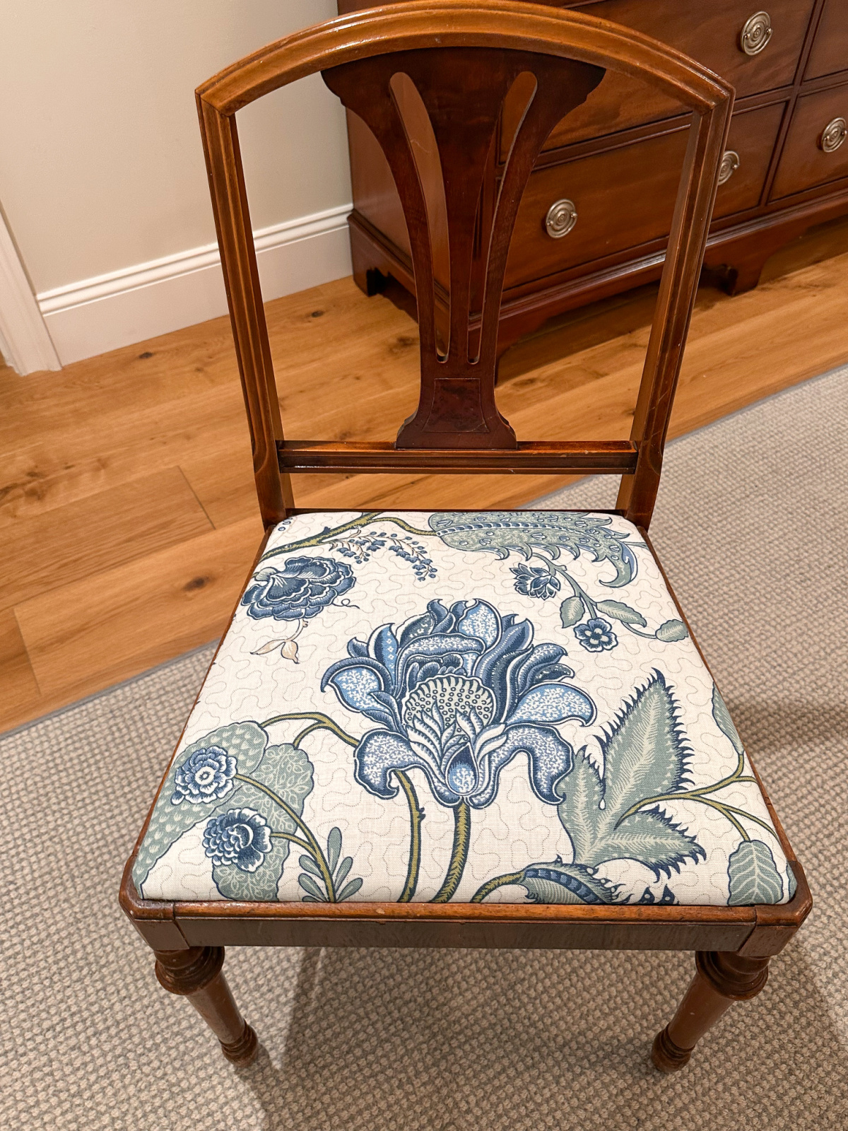 I love how the chair came out. That fabric is beautiful and I am so glad you kept your pretty chair. Maybe I should try it with my grandma’s chair that is also in my bedroom.
