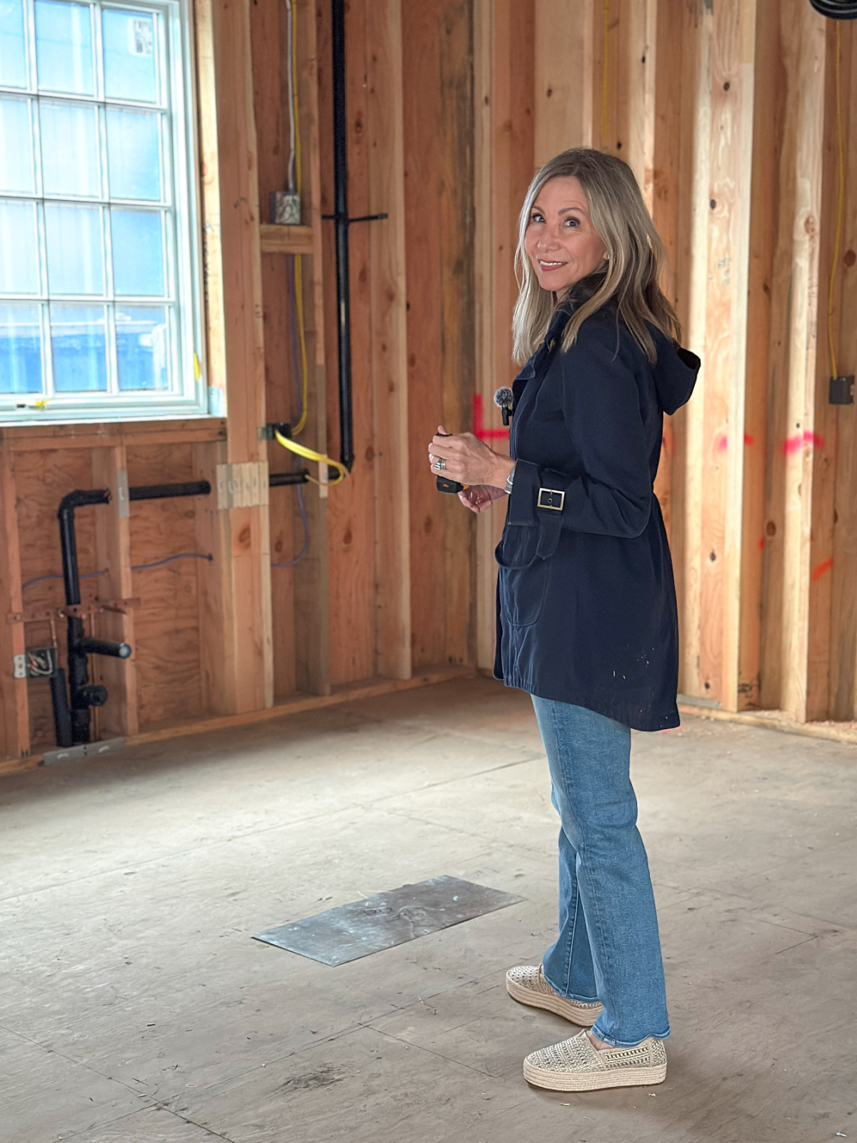 By the way, I’m wearing my new Tom’s platform espadrilles which, if I didn’t already mention it, are true to size. Should I be wearing them on a construction site on a rainy day. No. But, they’re super cute and I couldn’t help taking them for a test run.