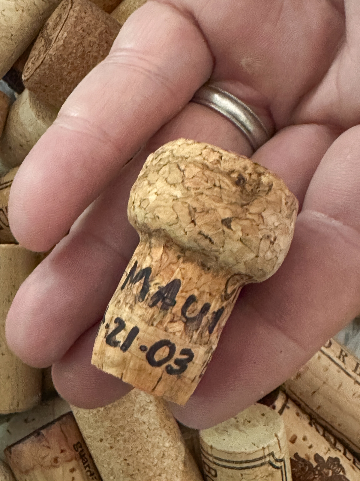 Last week Jim went through our bowl of wine corks accumulated over the past five years. It was an impressive run. Before tossing them we dug out our wedding cork from a bottle of Perrier Jouet.