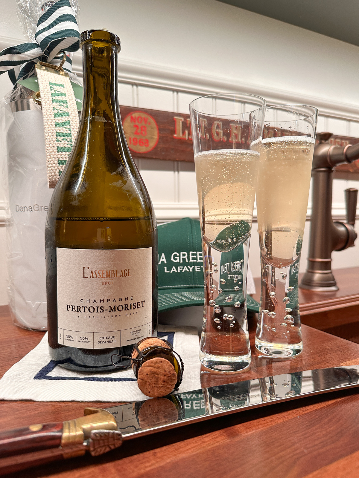 On Tuesday, we popped the cork on a bottle of LeLarge-Pugeot Rose Extra Brut 2014 from Chateau Sonoma’s French Bubble Club to celebrate Jim’s birthday and the close of Snowberry’s escrow.