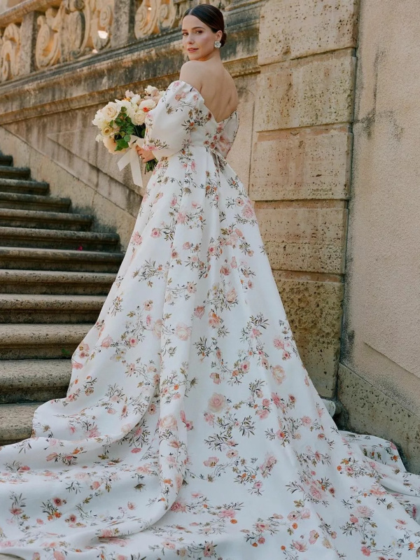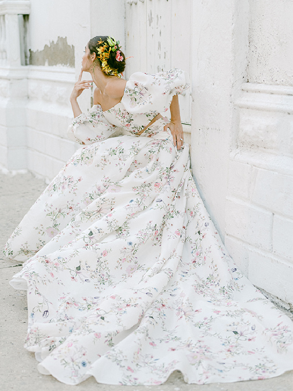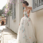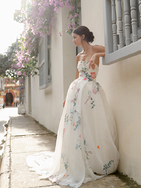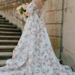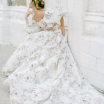 When I think of Monique Lhuillier I think of wedding dresses. Gorgeous wedding dresses. Her recent botanical inspired dresses are heavenly. Sophie Bush wore a botanical design for her wedding to Grant Hughes last summer. Monique’s line has expanded beyond bridal … but who knew it led her to housewares and Pottery Barn. Lucky us.
