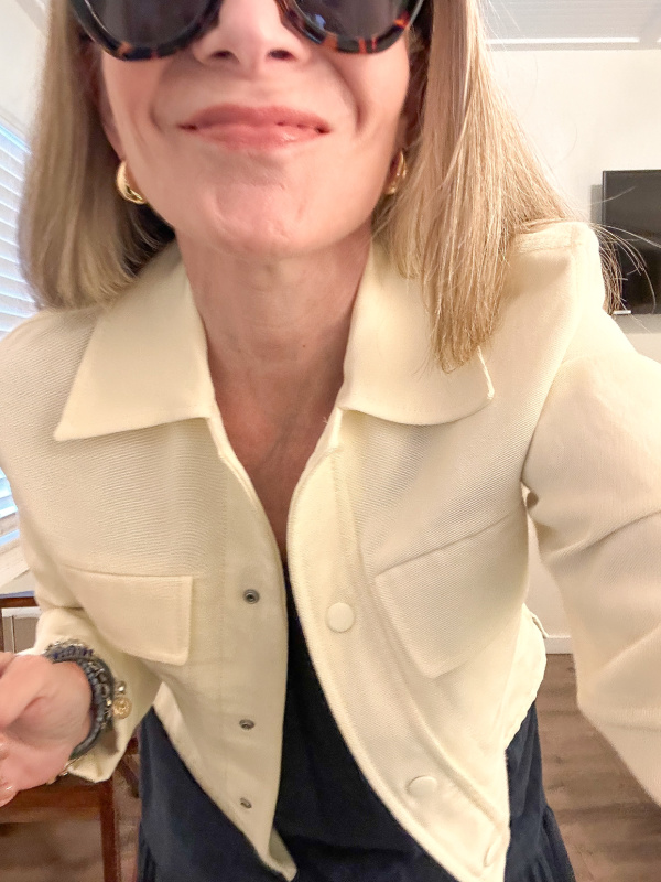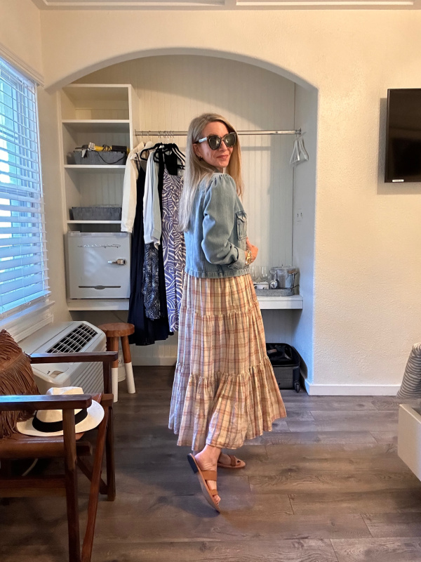 Our second day was a long one, breakfast through dinner. I was super comfortable in a plaid dress by The Great. It pairs beautifully with my Paige cropped denim jacket. Another favorite purchase this year that’s also long gone. Ugh. This one is similar but with a raw hem. You can search Poshmark … I found an XS here, a medium here and here, and an XL here. Poshmark also has a small in cream.