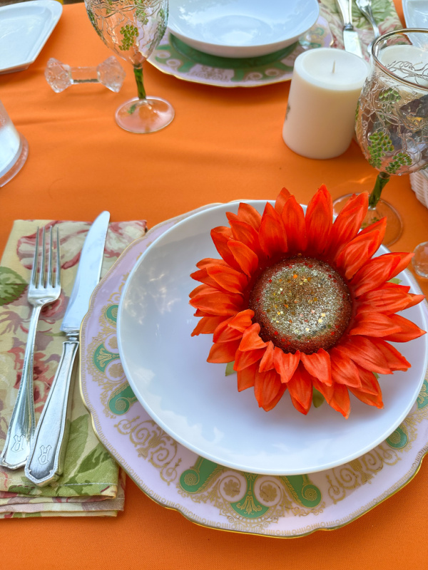 Wow the Ulla Johnson plates and the Murano glasses are so gorgeous. I tend to gravitate toward green and yellow but I love the colors and it reminds me of Fall.