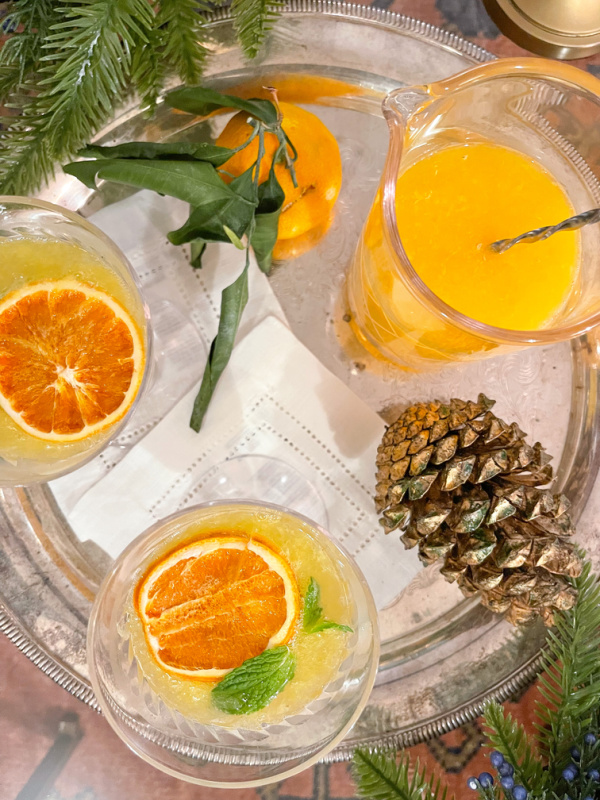 Cara Cara Orange Winter Spritz on silver tray.