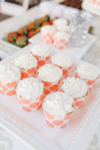 Borrowing liberally from Cindy’s baby shower template (hey, she offered) I tracked down her cute coral, Kate Spade polka dot napkins. The napkins became the jumping off point for our table settings and overall aesthetic.