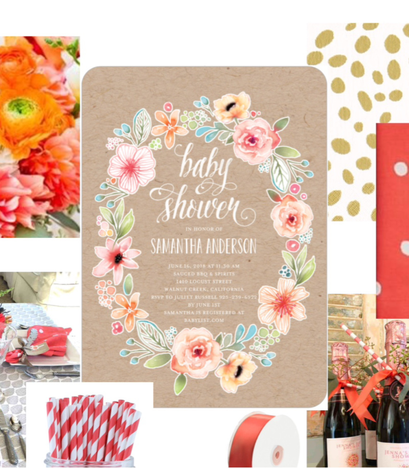The shower invitation and all other printed materials (place cards, favor cards, game card, welcome sign and big photo prop frame) came from an Etsy shop that is no longer in business. In addition to Etsy, Minted offers many pretty invitation options. As does Dogwood Hill.
