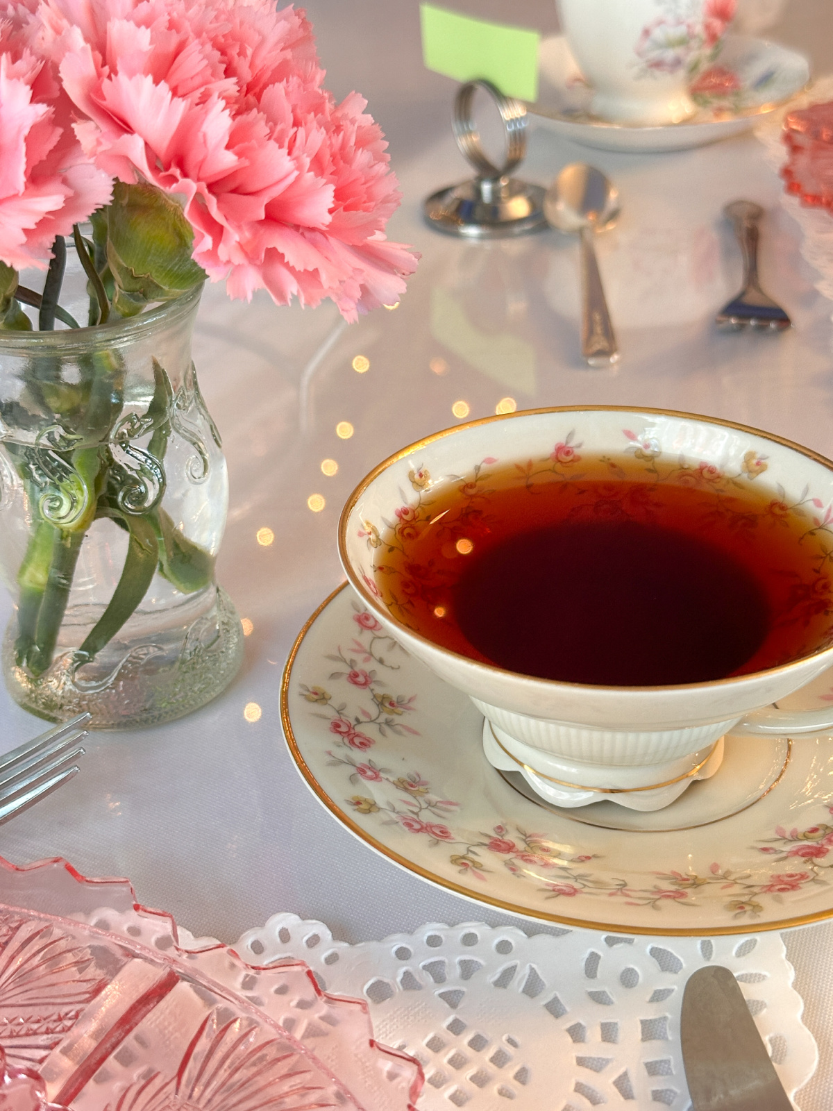 6. Juliet, I hope you are having a festive and fun weekend. I think the tea looks lovely. So nice you keep doing this with friends. The gardens look so pretty too all lit up!