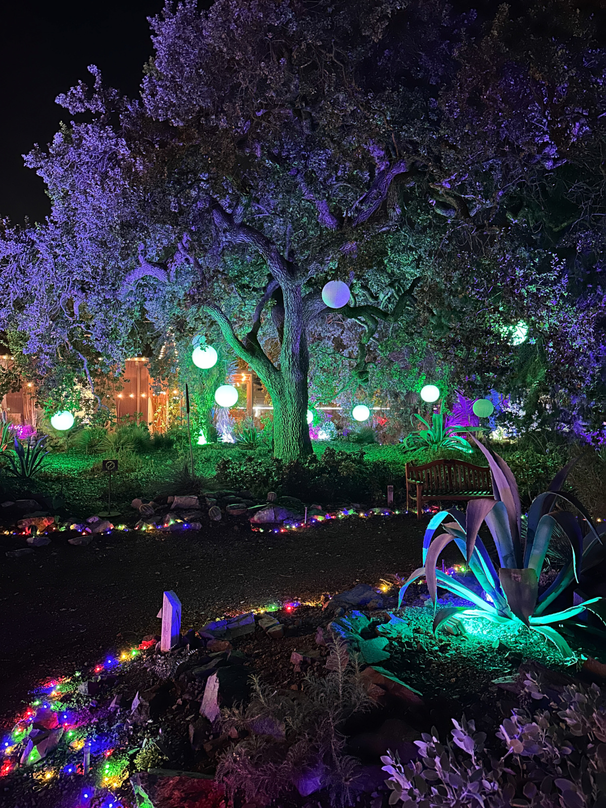 One of my favorite things about the season are local traditions like holiday teas, garden tours and performances. Last weekend Jim and I went to Ruth Bancroft Gardens annual Garden of D’Lights. It’s exactly what it sounds like, evening tours (self-guided) of the 3.5 acre botanical garden lit up for the holidays. Pretty lights, music, plus cocoa and cider. Get tickets here. Dogs don’t need a ticket, but do need to be on a leash (and a warm sweater is nice). We left our girls at home because, as Jim says, they’re not civilized or cultured. The Garden of D’Lights tours run through January 11th (three entry times each night), so there’s still time to get tickets.