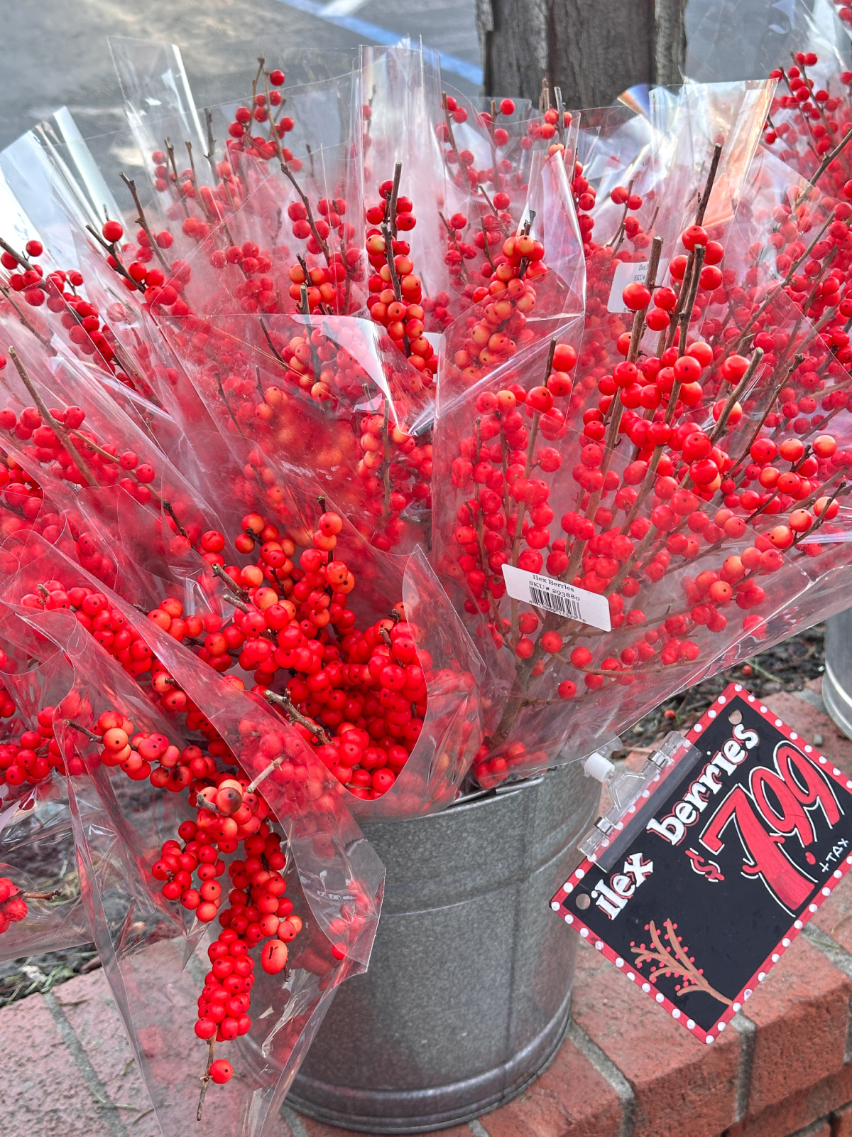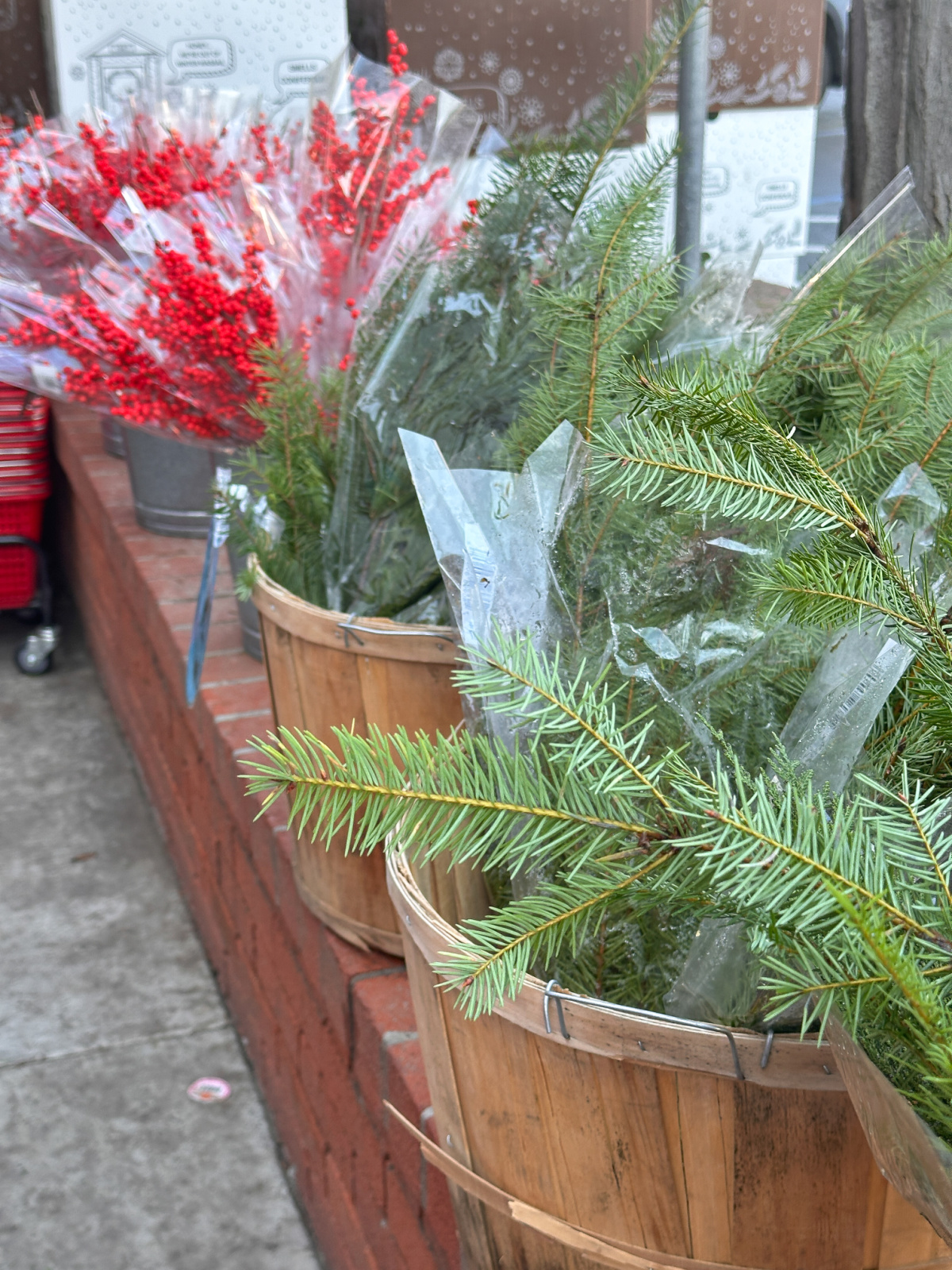Our TJ’s is stocked with magnolia and eucalyptus branches, other greenery and beautiful red berries.