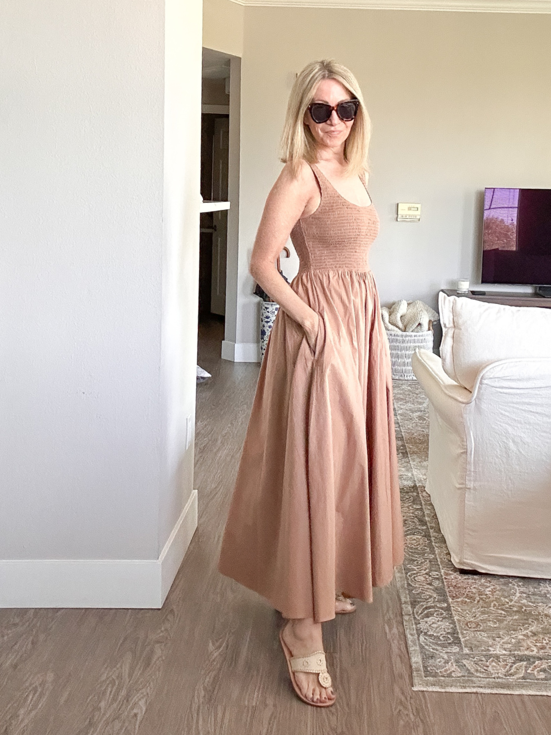 While at Zahra I tried on Xirena’s Florence dress in Cappuccino. Love the ruched top and pockets … I can no longer tolerate a dress without pockets.
