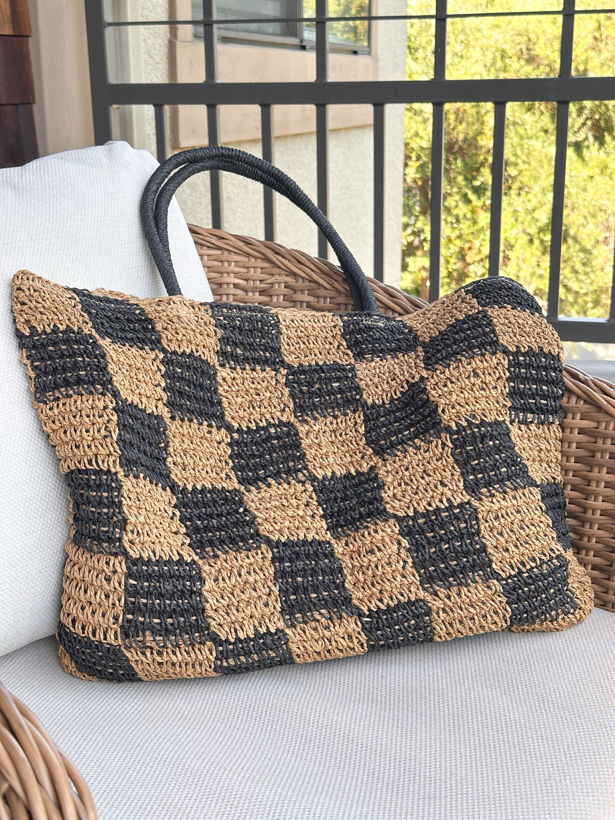Wing Basket Bag | Scarf | Gingham Straw Tote