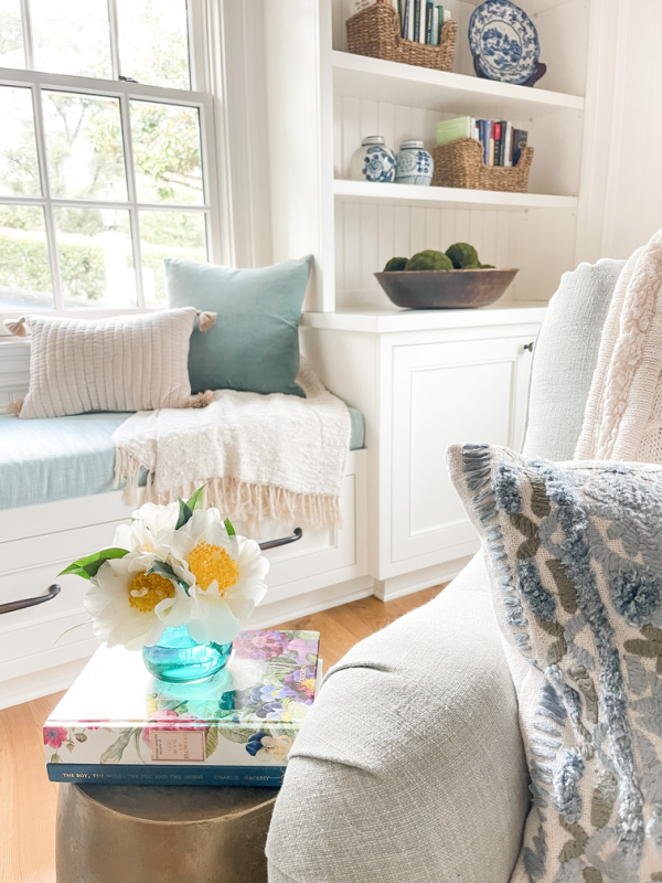 I also switch out my coffee table books to reflect the light and bright colors of spring.