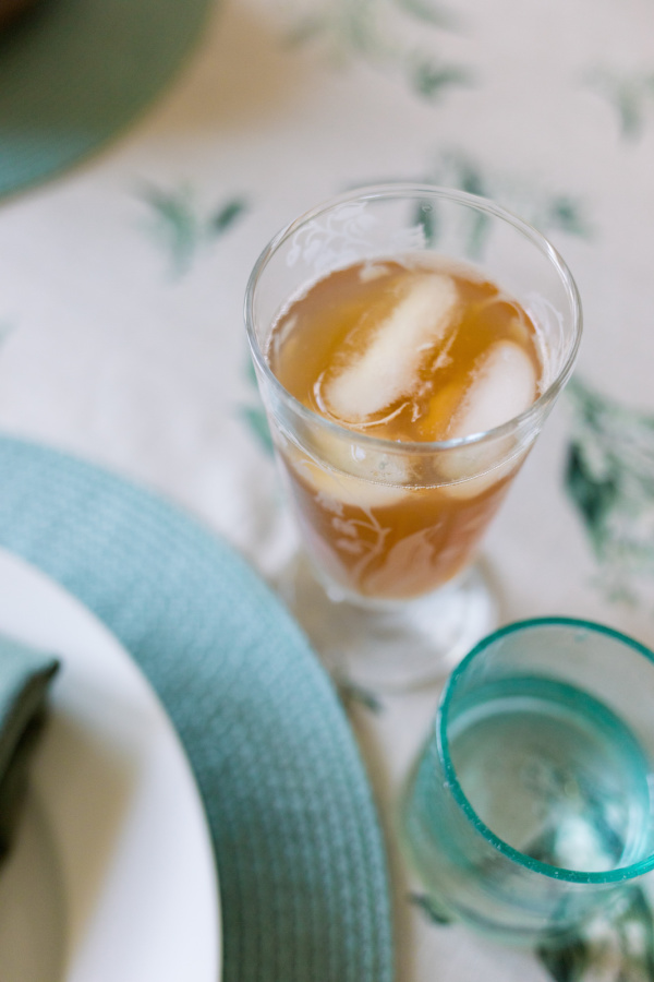 The rest of my spring table is a hodgepodge of things pulled from the cupboards. My round, woven placemats are dusty blue (they look green). I think the dark green or ivory would be pretty too. I used aĀ solid green linen napkin, but I love this Provence striped option.