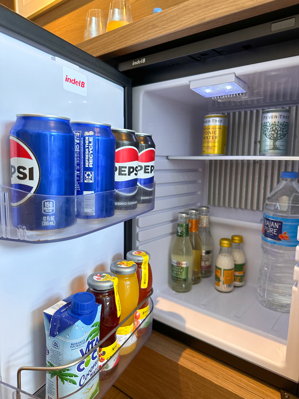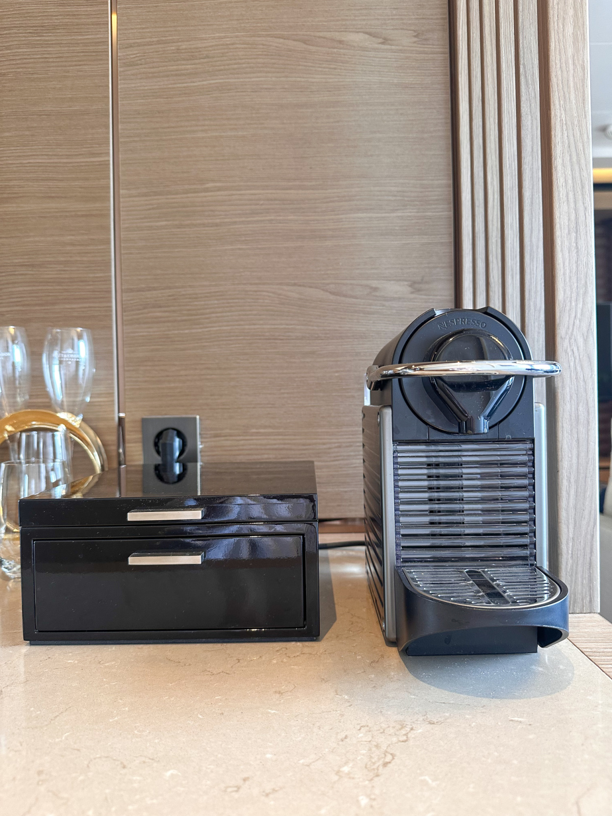 While the sitting and dining areas are nice to have and make the room feel more spacious, we spent very little time using them. The table functioned more as a drop zone, and buffet table for our morning breakfast tray. The sofa converts to a bed but I can’t imagine traveling with more than two people in this suite.