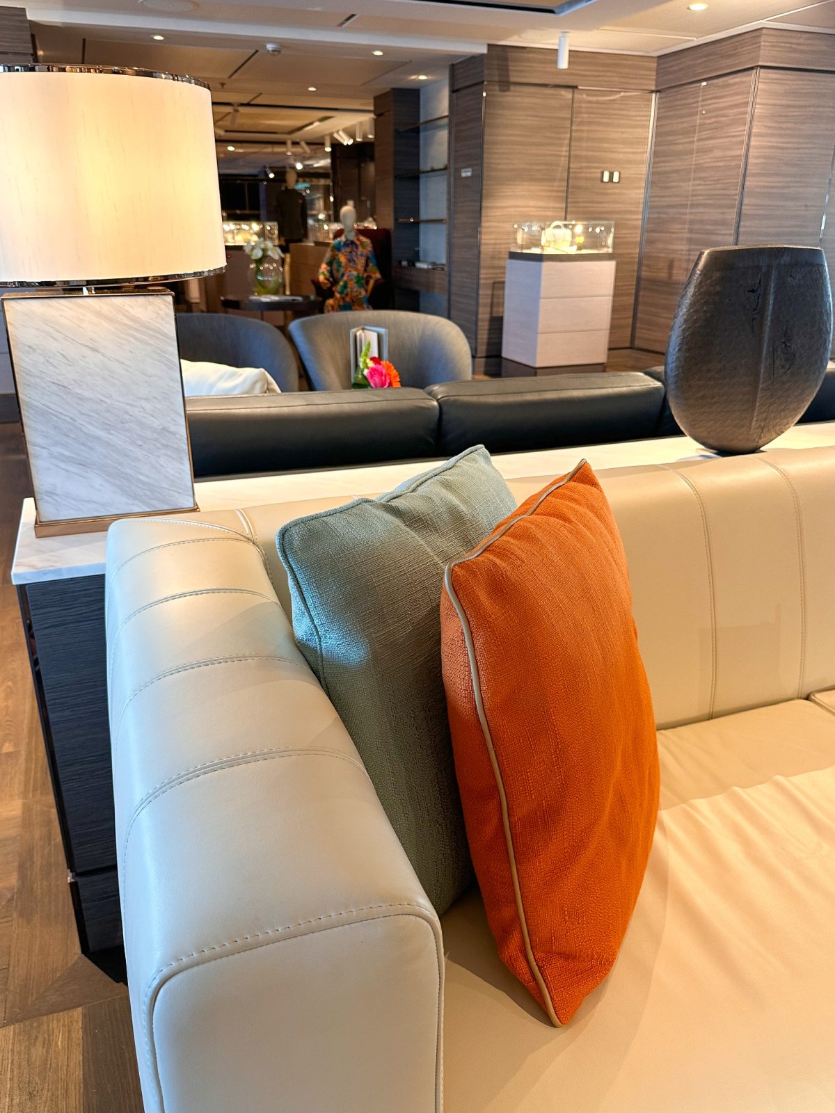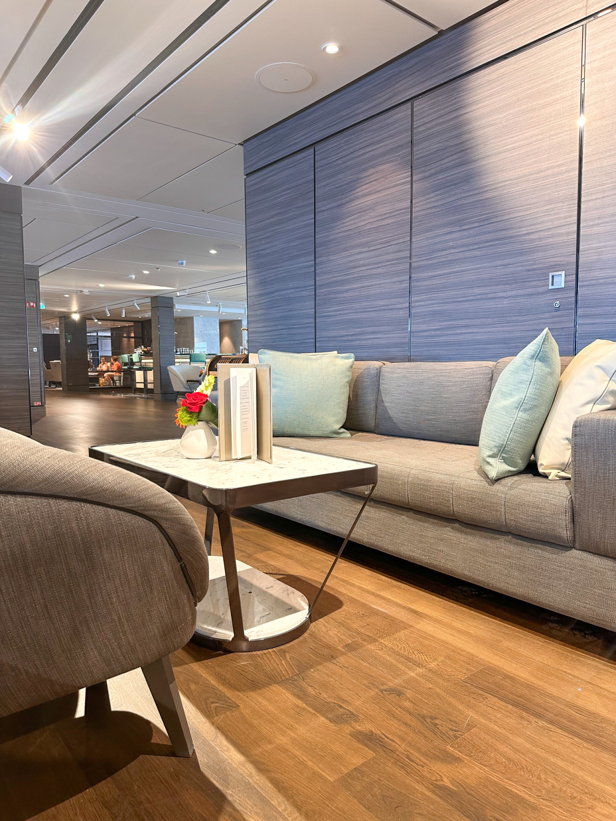 The main gathering spaces are The Living Room and The Observation Lounge. Both popular spots to enjoy morning coffee, lunch, afternoon tea and, of course, after dinner and late night drinks and music. There are four or five really great musicians onboard who played solo and together, as well as a DJ. We were well entertained.