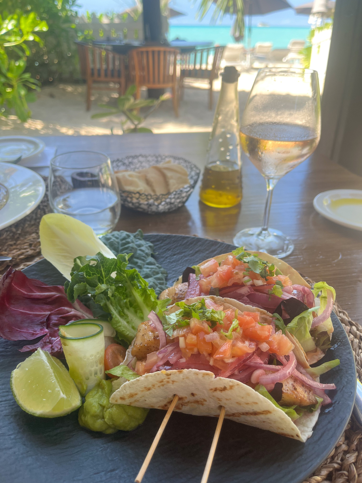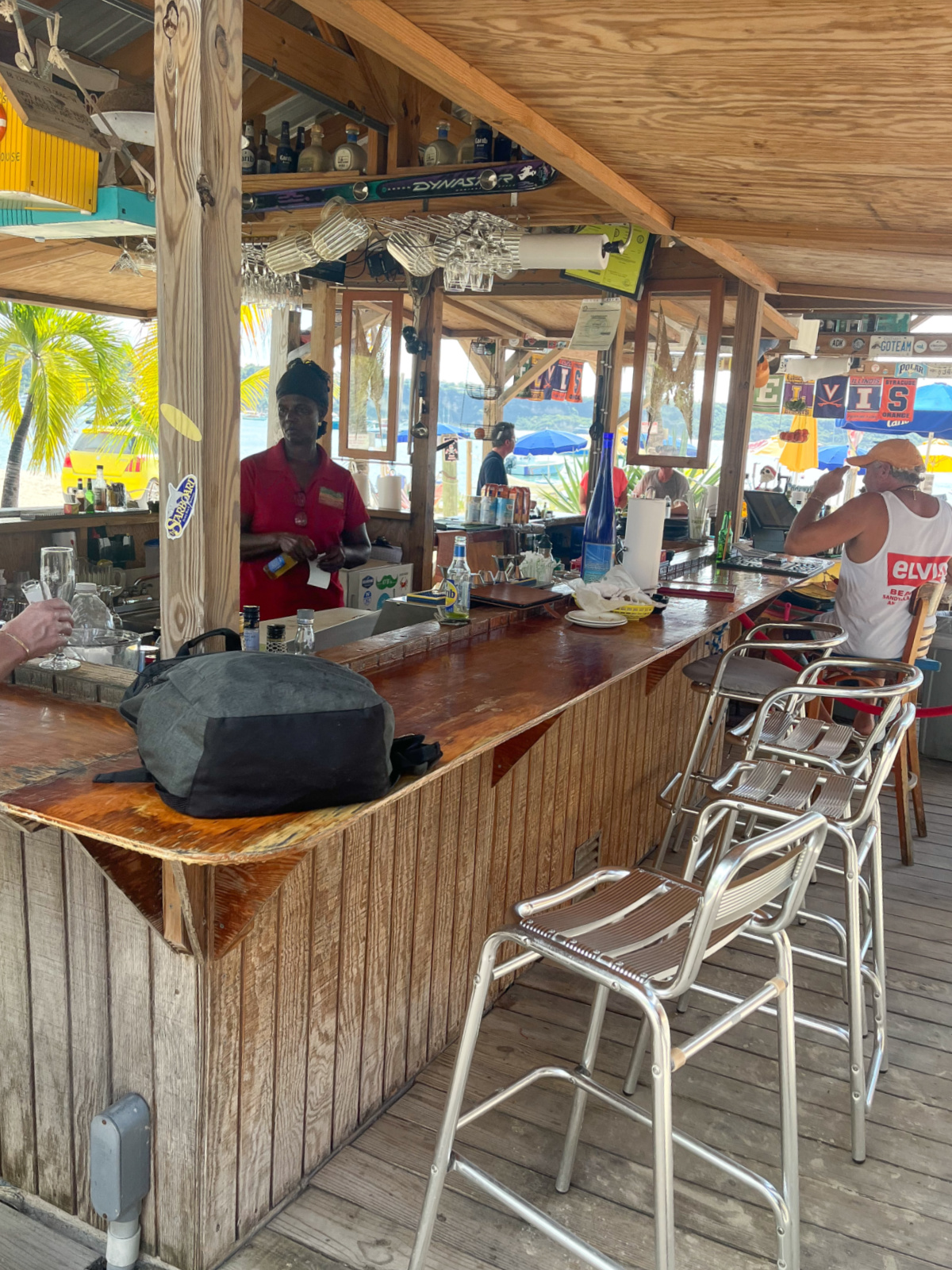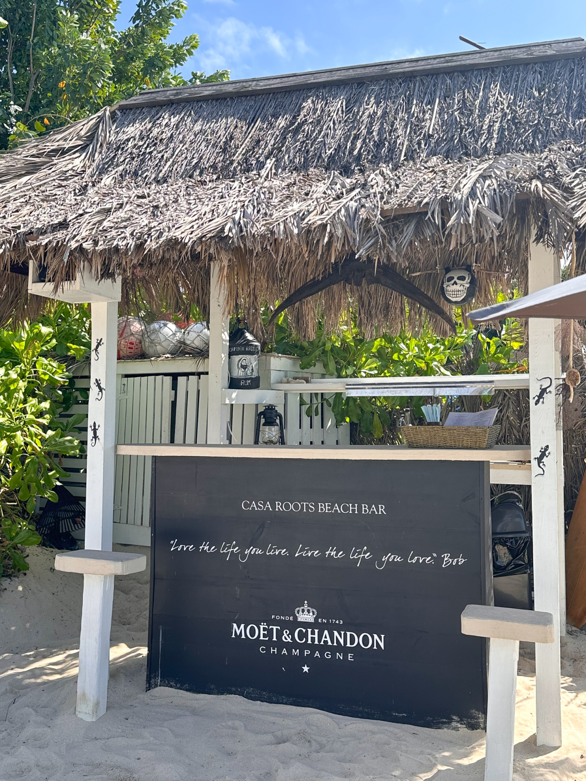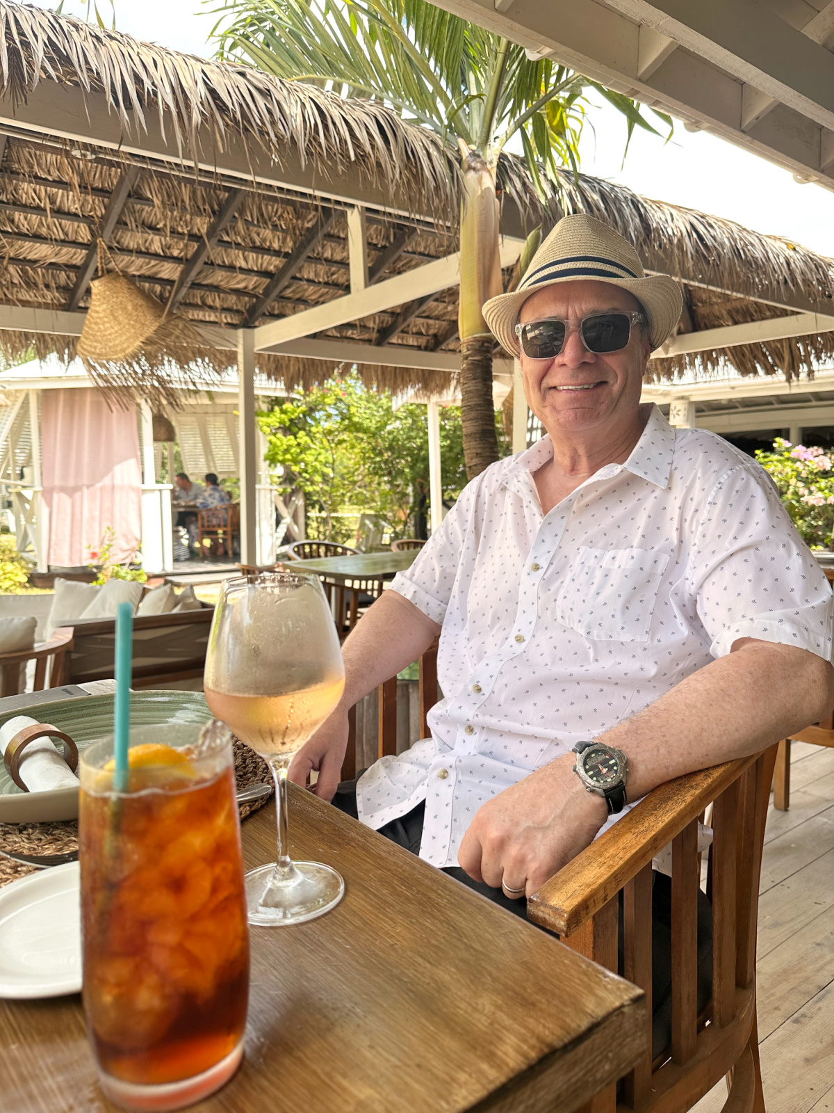 After touring the church and grounds we found a taxi to Casa Roots a beach bar and restaurant on Runaway Beach. We didn’t have a reservation which caused a moment of anxiety, but we were early and managed to snag one of the best tables in this totally enchanting location. I ordered a Painkiller, Jim a sparkling rose and we settled in for another delicious lunch.