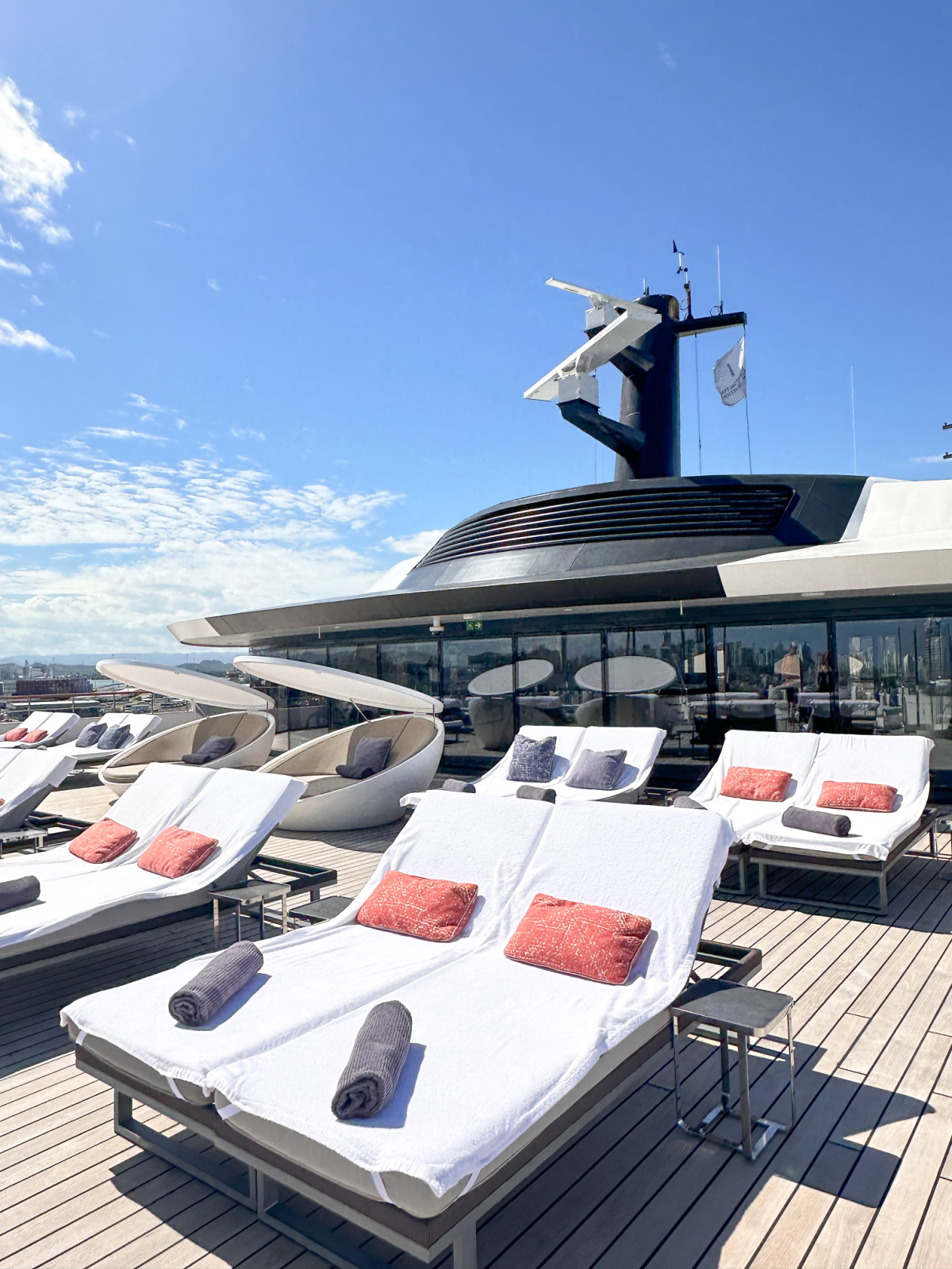 Our concierge led us to our suite where we took a quick tour and made our way to The Pool House for lunch. By the time we returned from lunch our luggage had arrived so we unpacked and set off again to explore the yacht.