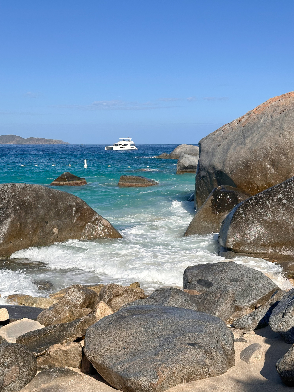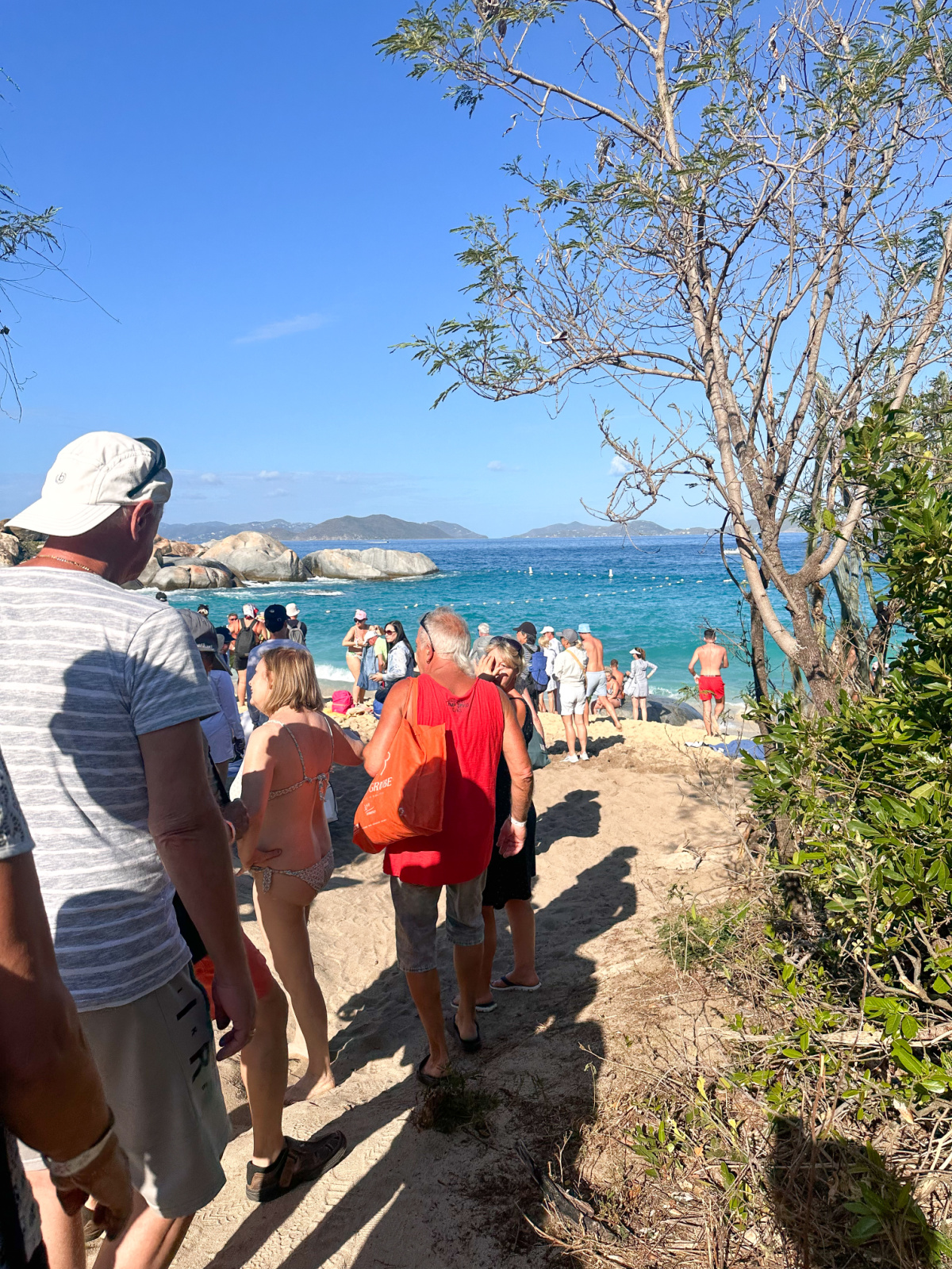 Last stop, Virgin Gorda. We booked an excursion to the Virgin Gorda Beach Baths where we traversed the caves made by massive granite boulders forming ‘baths’ between two beautiful beaches. The seas were rough with red flags warnings so there was no swimming. Back on the yacht it was too rough for the Marina to open up. The Baths is a very popular destination and it was packed. Not exactly a tranquil experience.