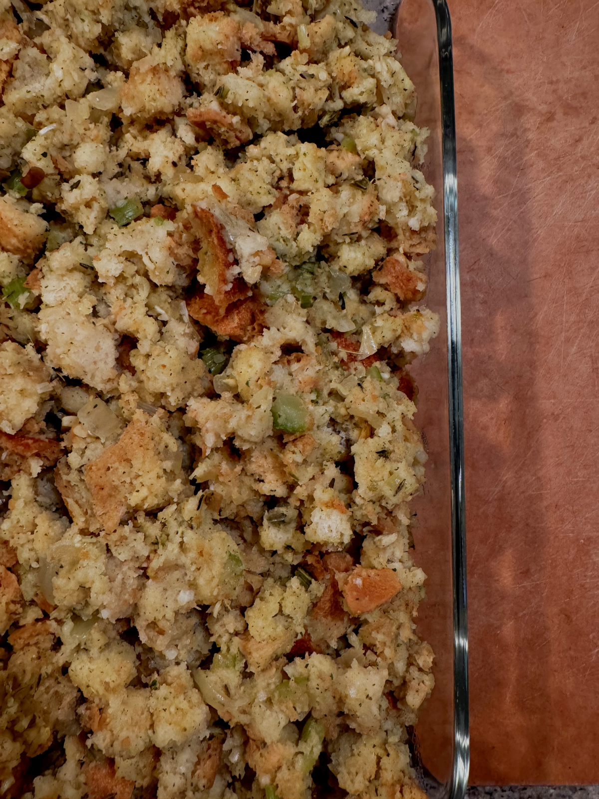Realizing there was no time for a do-over – not even Amazon (curse their name) could get a hand mixer to me in time. So the gloppy potatoes went into a baking dish and into the refrigerator until time to bake. Maybe, just maybe I hoped, they’d turn into their intended consistency during the baking process.