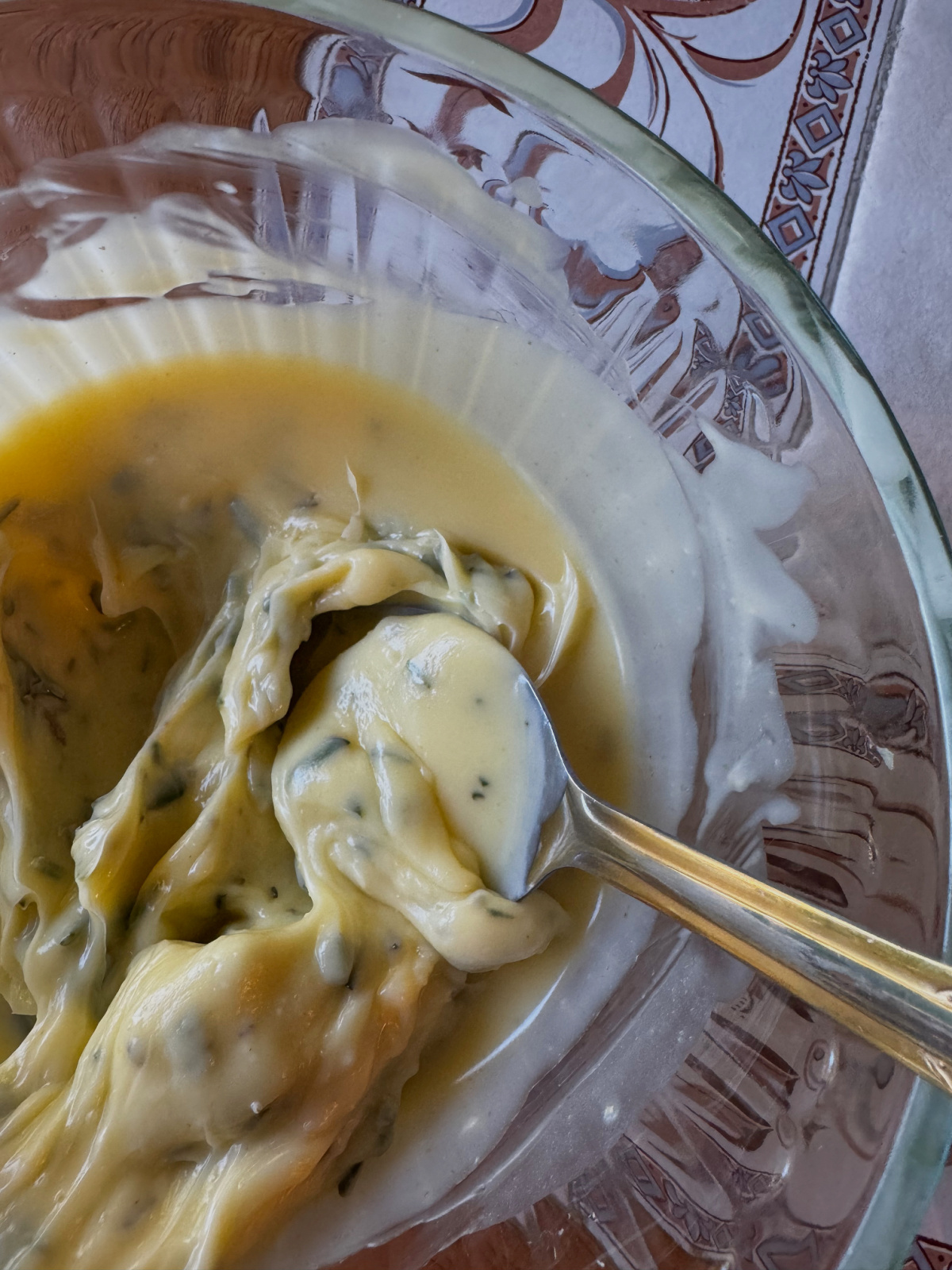 While the potatoes were simmering I unboxed the food mill and ask Jim if he’d assemble it. He grumbled about there being no instructions but got it done. I spooned the potatoes into the mill and started to crank but nothing came through the bottom grates. I started to panic. Jim flipped the grate and that worked. But the grated potatoes did not resemble Ina’s video. I was alarmed but decided to take an optimistic approach and add the remaining ingredients.